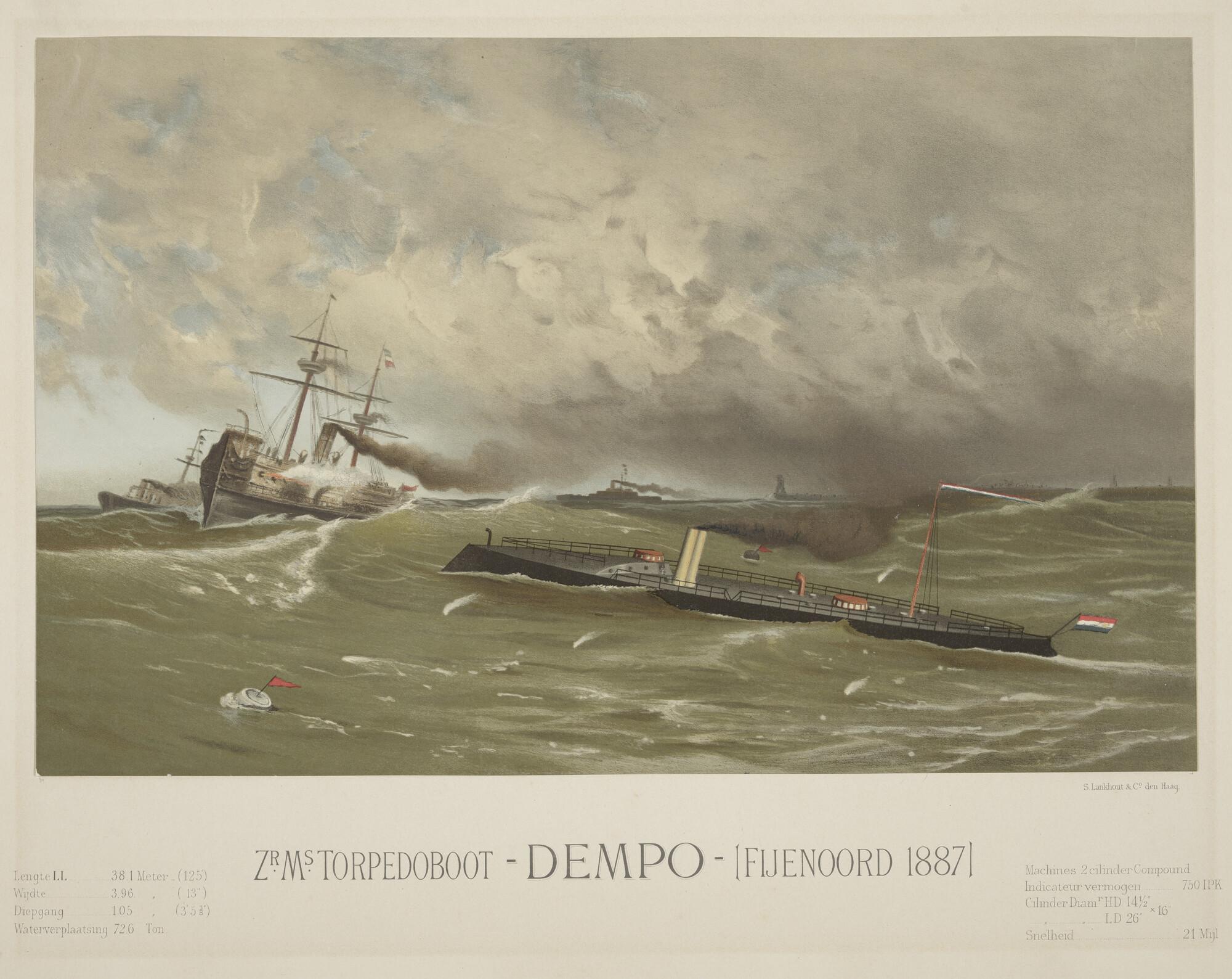 De torpedoboot Zr.Ms. 'Dempo', gebouwd in 1887
