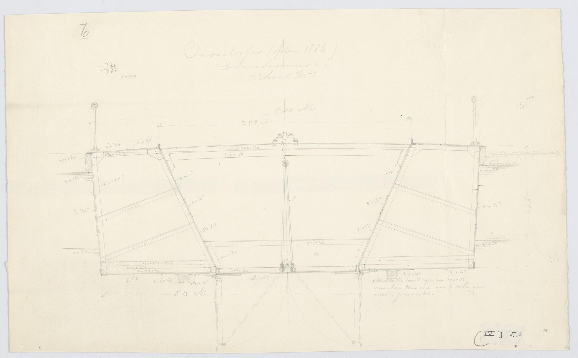 Horizontale dwarsdoorsnede van een ijzeren onderlosser, 1886