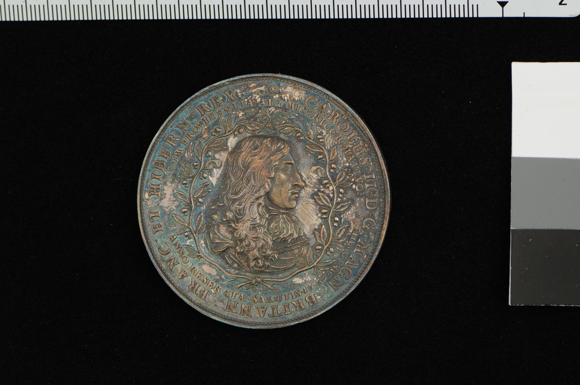 Penning op de terugkeer van Karel II in Engeland en de behouden overtocht van Scheveningen naar Dover, 1660.