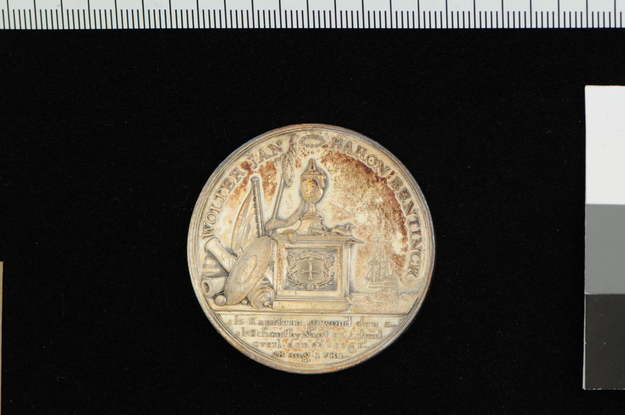 Zilveren penning op het overlijden van schout-bij-nacht Wolter Jan baron Bentinck, gevallen in de slag bij Doggersbank, 24 augustus 1781.