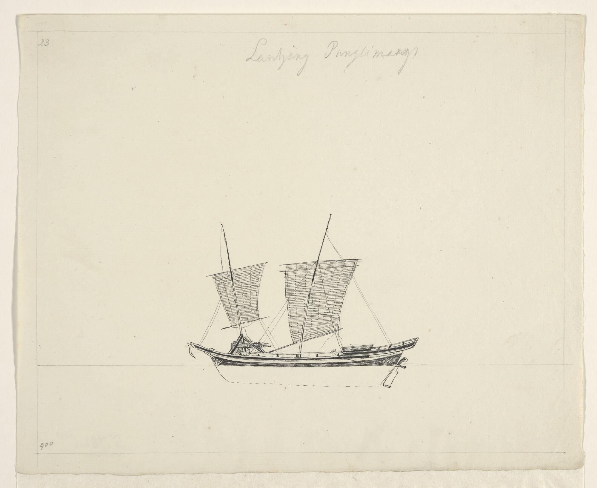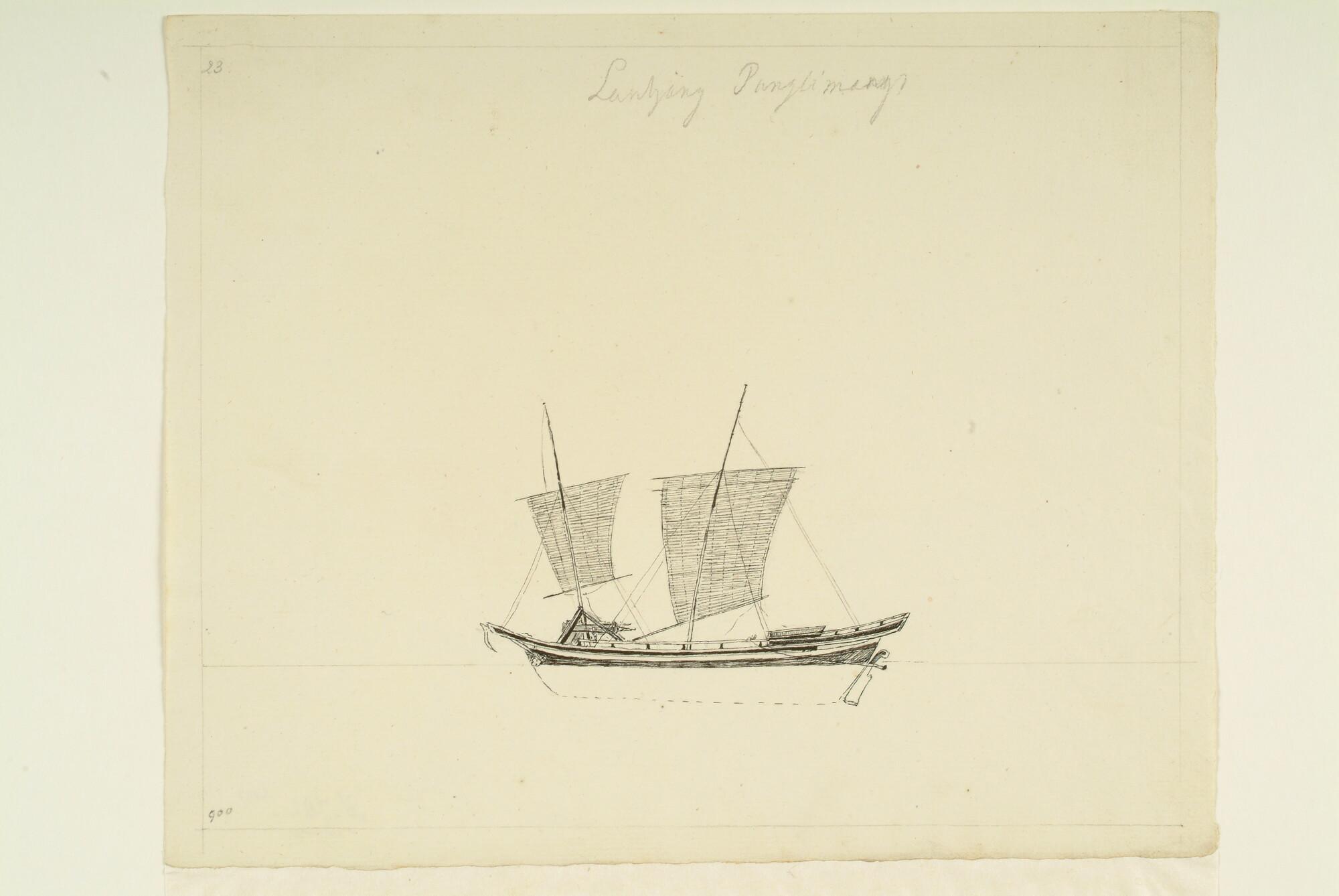 Tekening van een inlands vaartuig uit de Oostindische Archipel: een Lantjang Panglimangs