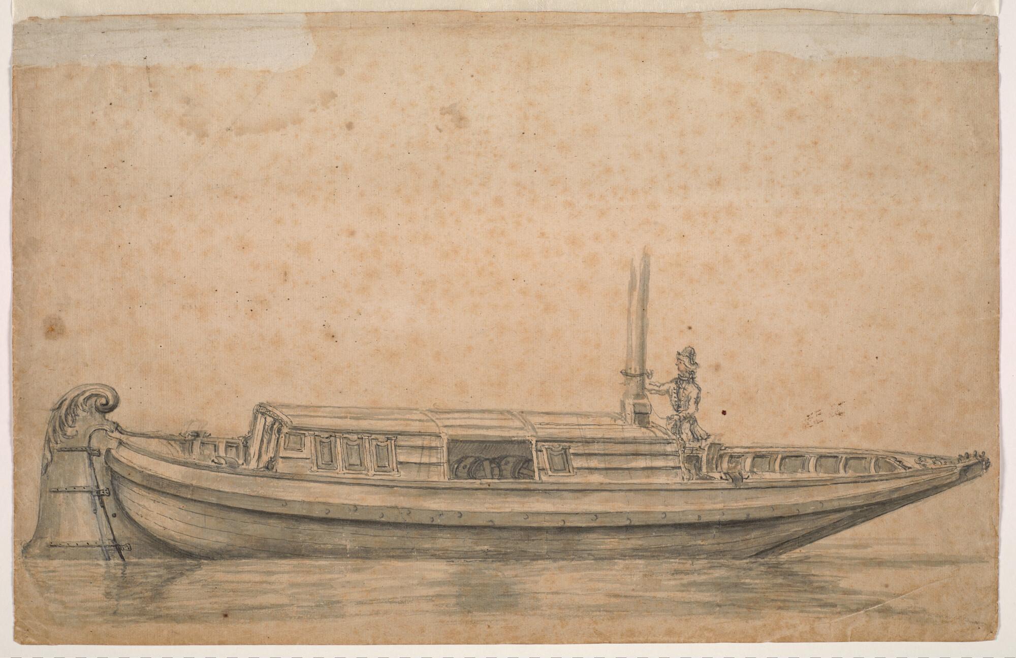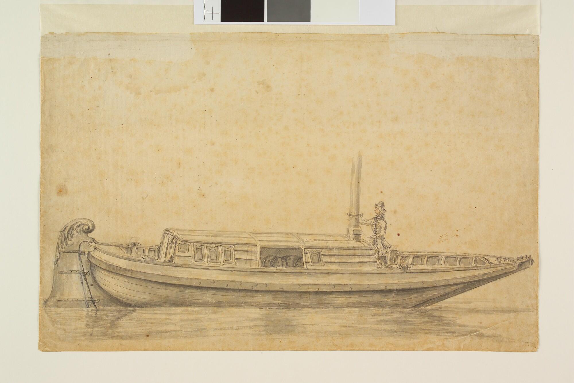 Een trekschuit; verso: (land)meetkundige tekening.