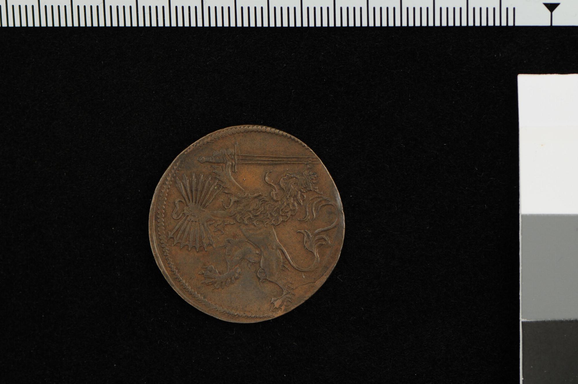 Rekenpenning geslagen ter gelegenheid van de vredesonderhandelingen te Middelburg, 1595.