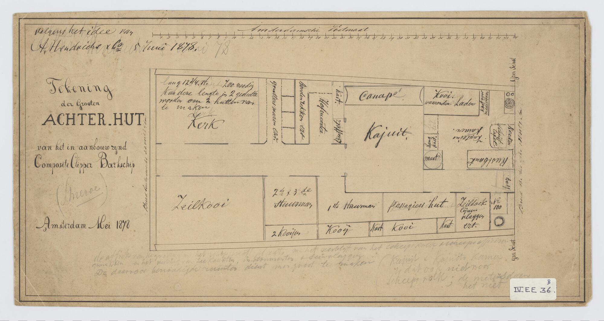 Indeling achterschip van de klipperbark "Smeroe".