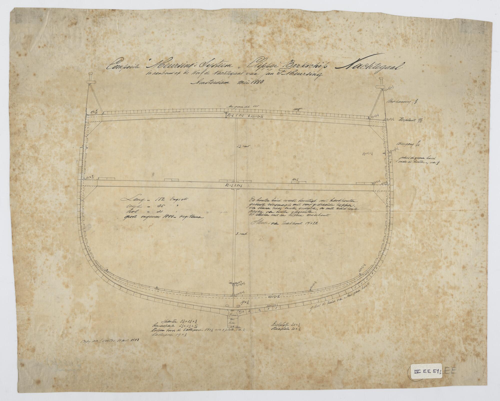 Grootspant, en spantenraam, van de klipperbark "Nachtegaal".