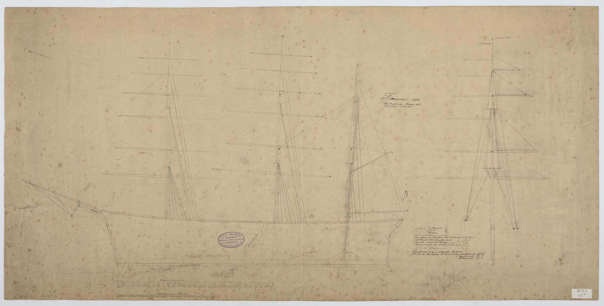 Tuigplan van de klipperbark 'Tjerimai' 1882