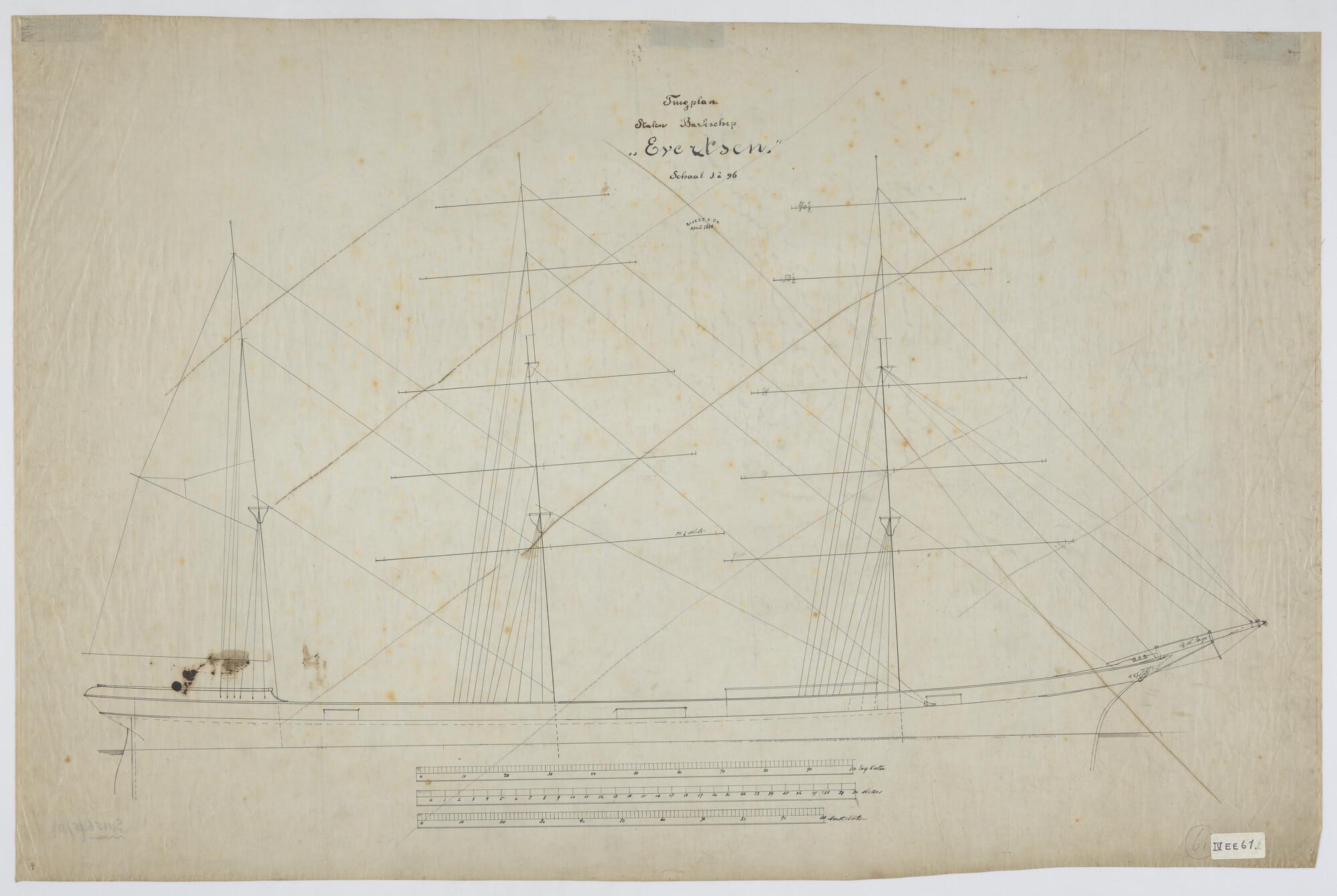 Tuigplan van de stalen klipperbark 'Evertsen'