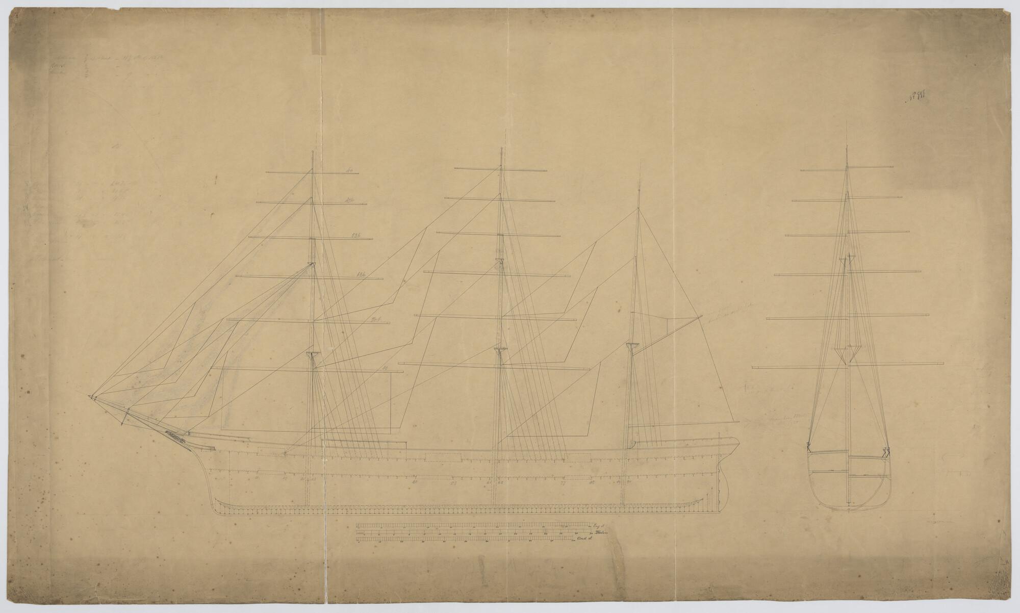 Tuigplan van de klipperbark Van Galen, 222 x 37.3 x 22 voet.