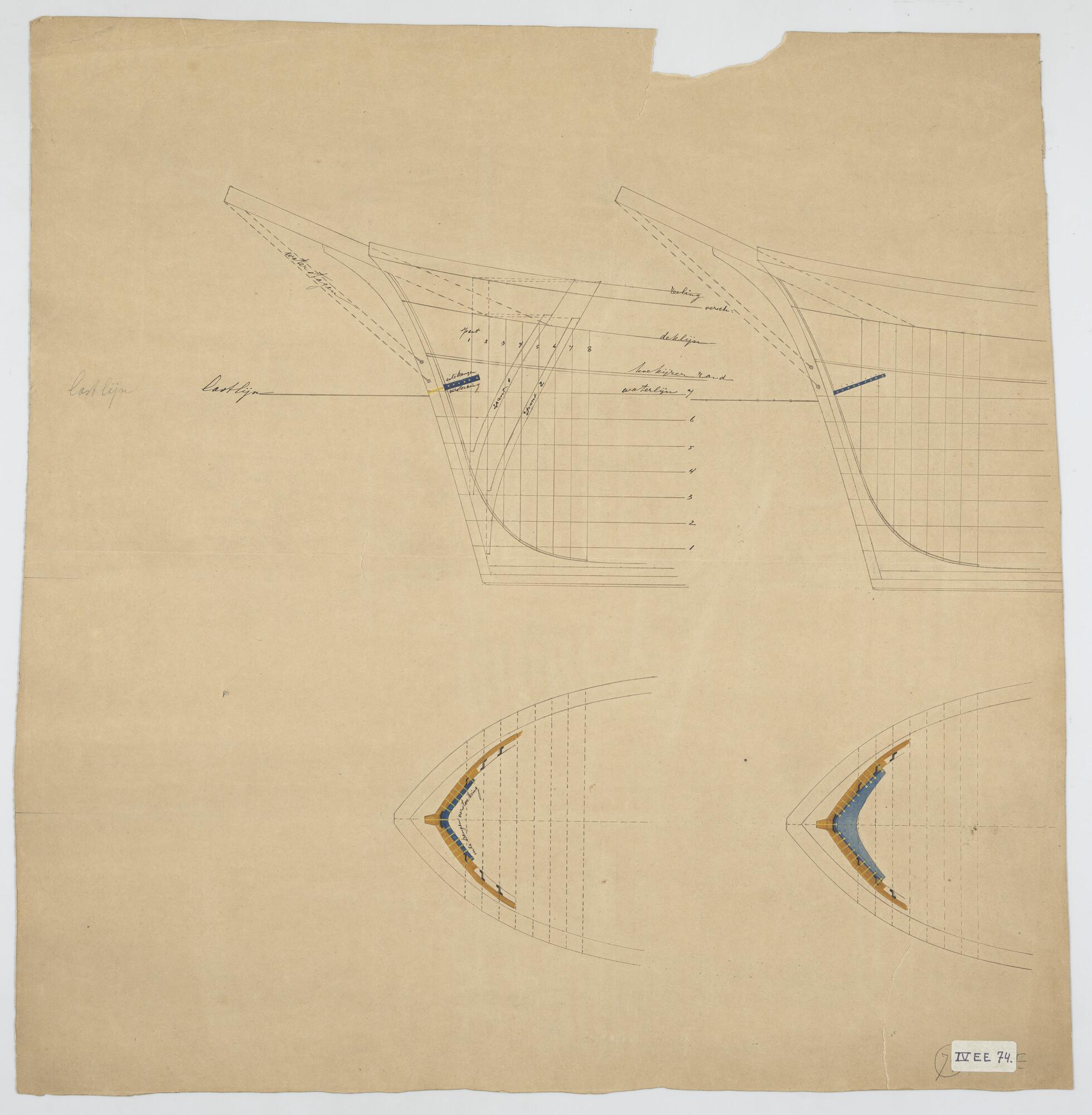 Boegversterking van de klipperbark Van Galen, 222 x 37.3 x 23.8 voet
