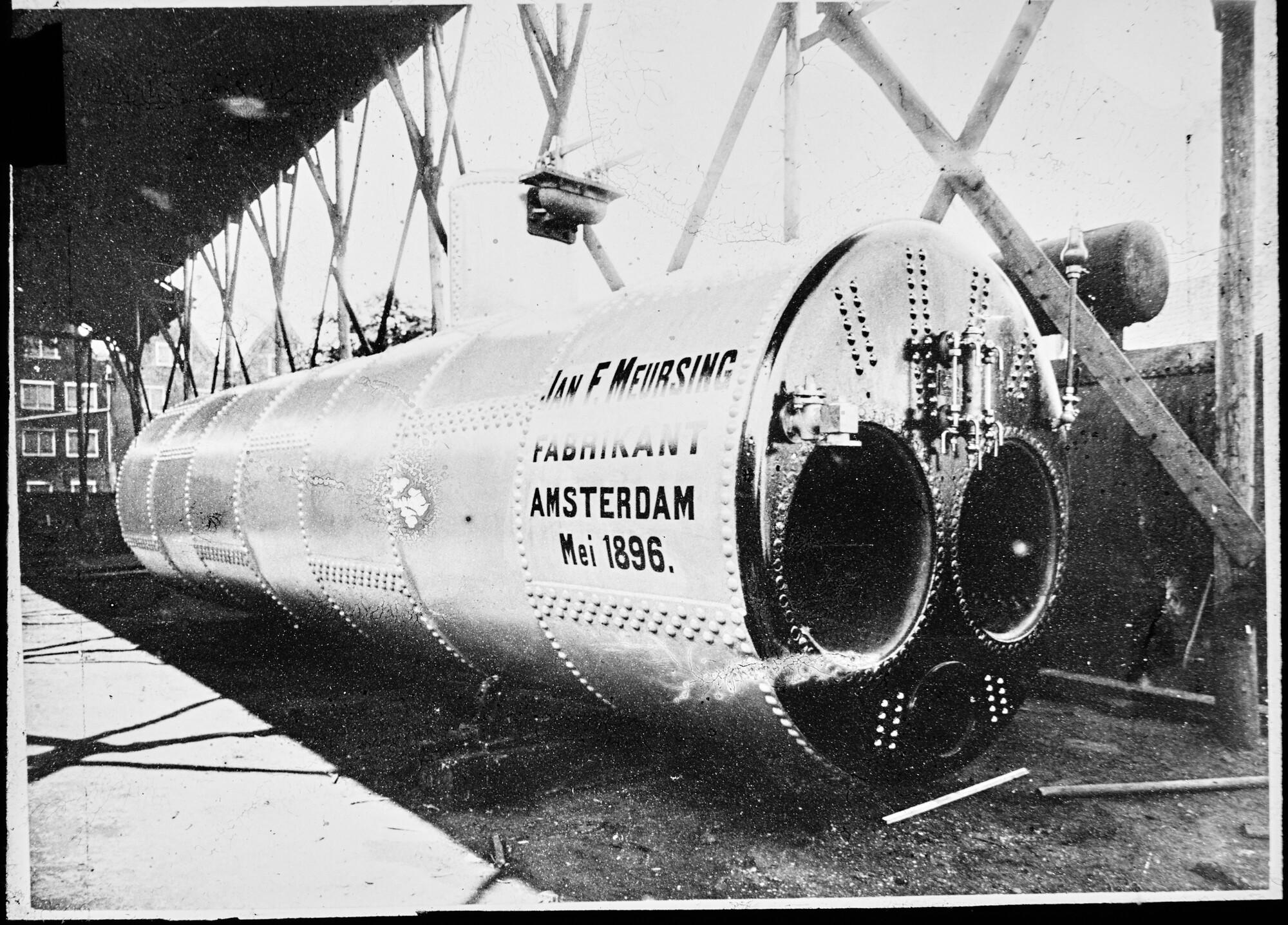 Lantaarnplaatje van een landketel (nummer 38, 39 of 41) voor de Phoenix Brouwerij, gebouwd bij de Fabriek voor Werktuigen en Ketels te Amsterdam, mei 1896.