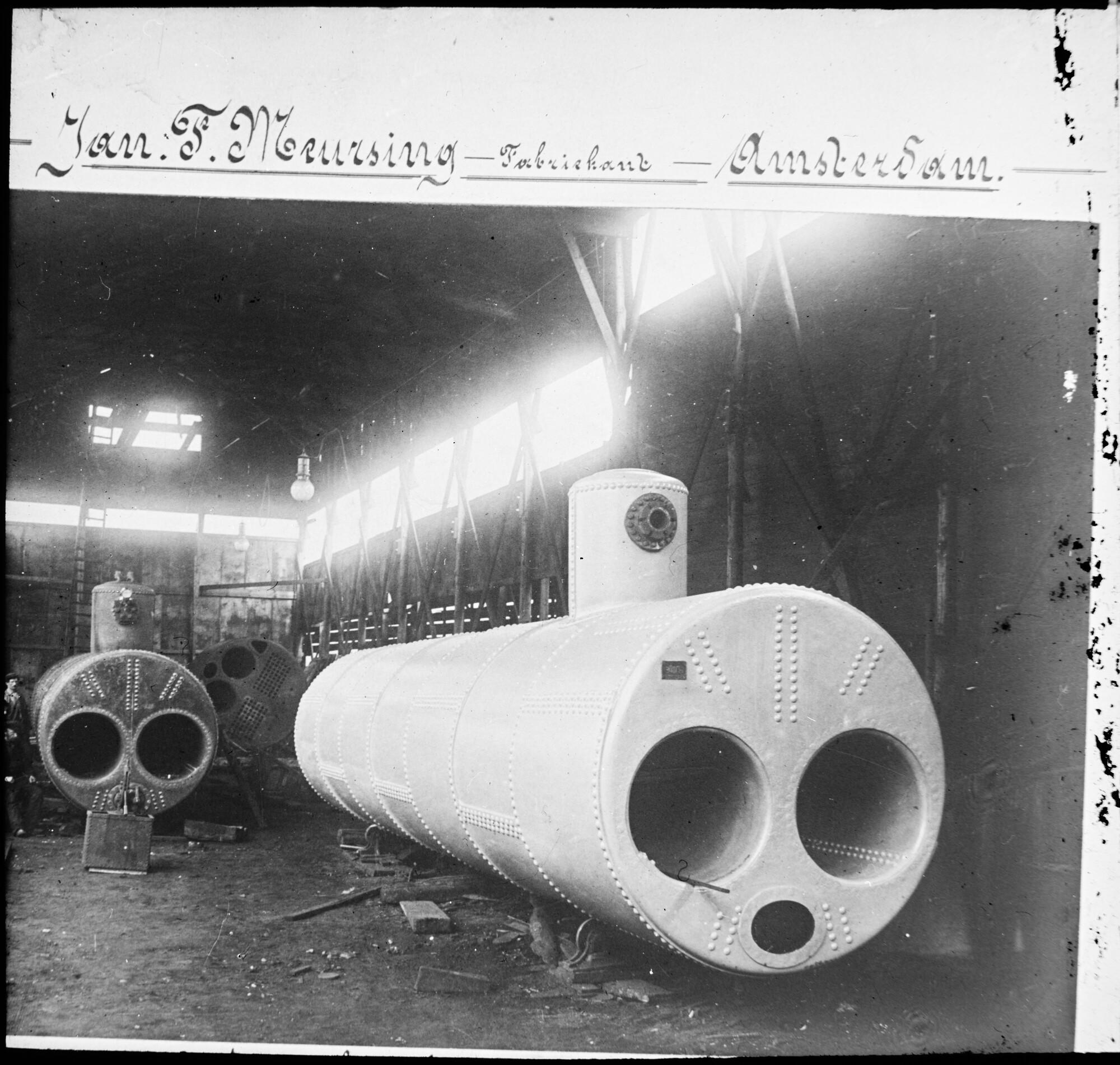Lantaarnplaatje van stoomketel voor Graansilo's in aanbouw, augustus 1897.