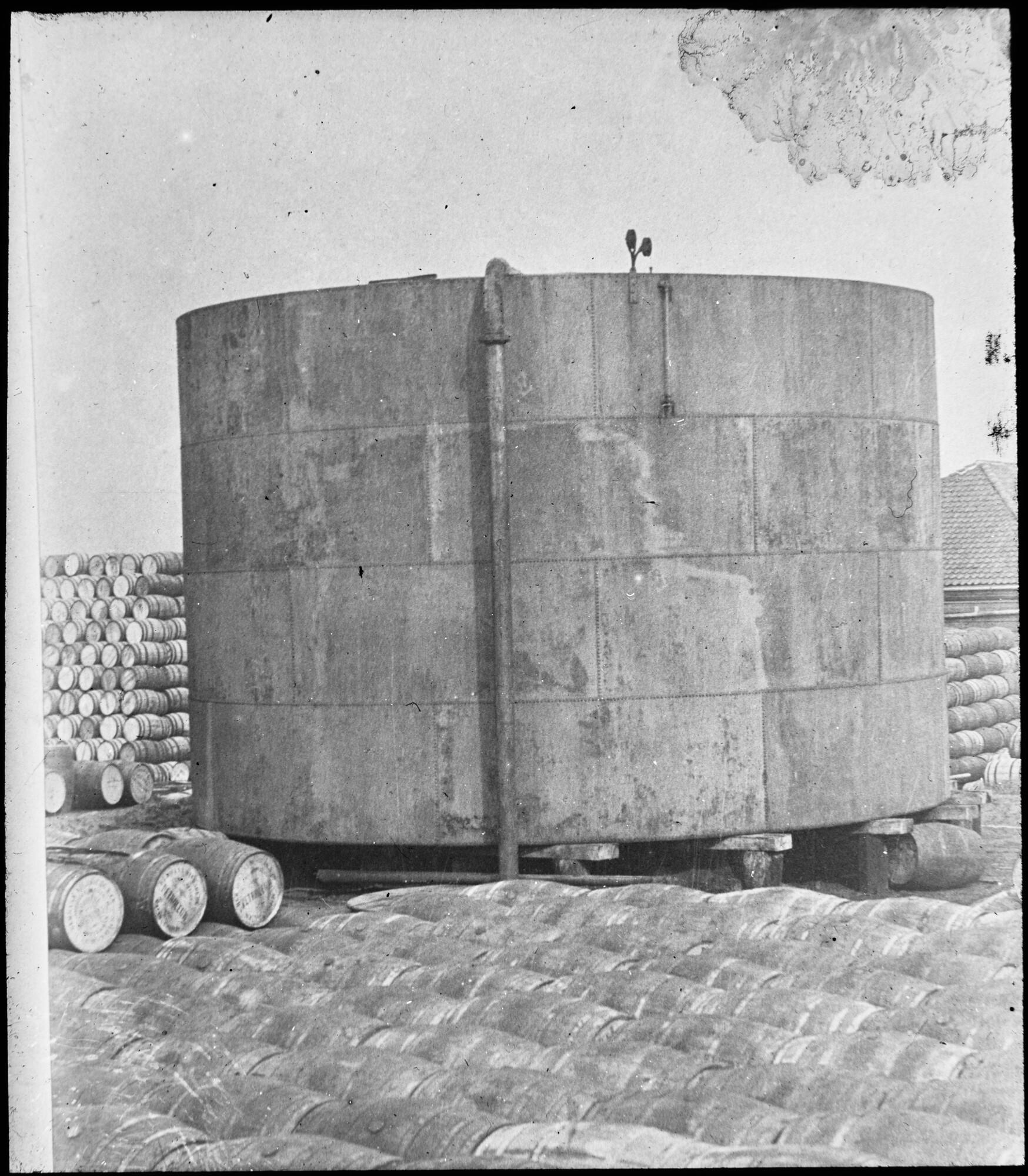 Lantaarnplaatje van een tank of gashouder in aanbouw op de werf De Nachtegaal