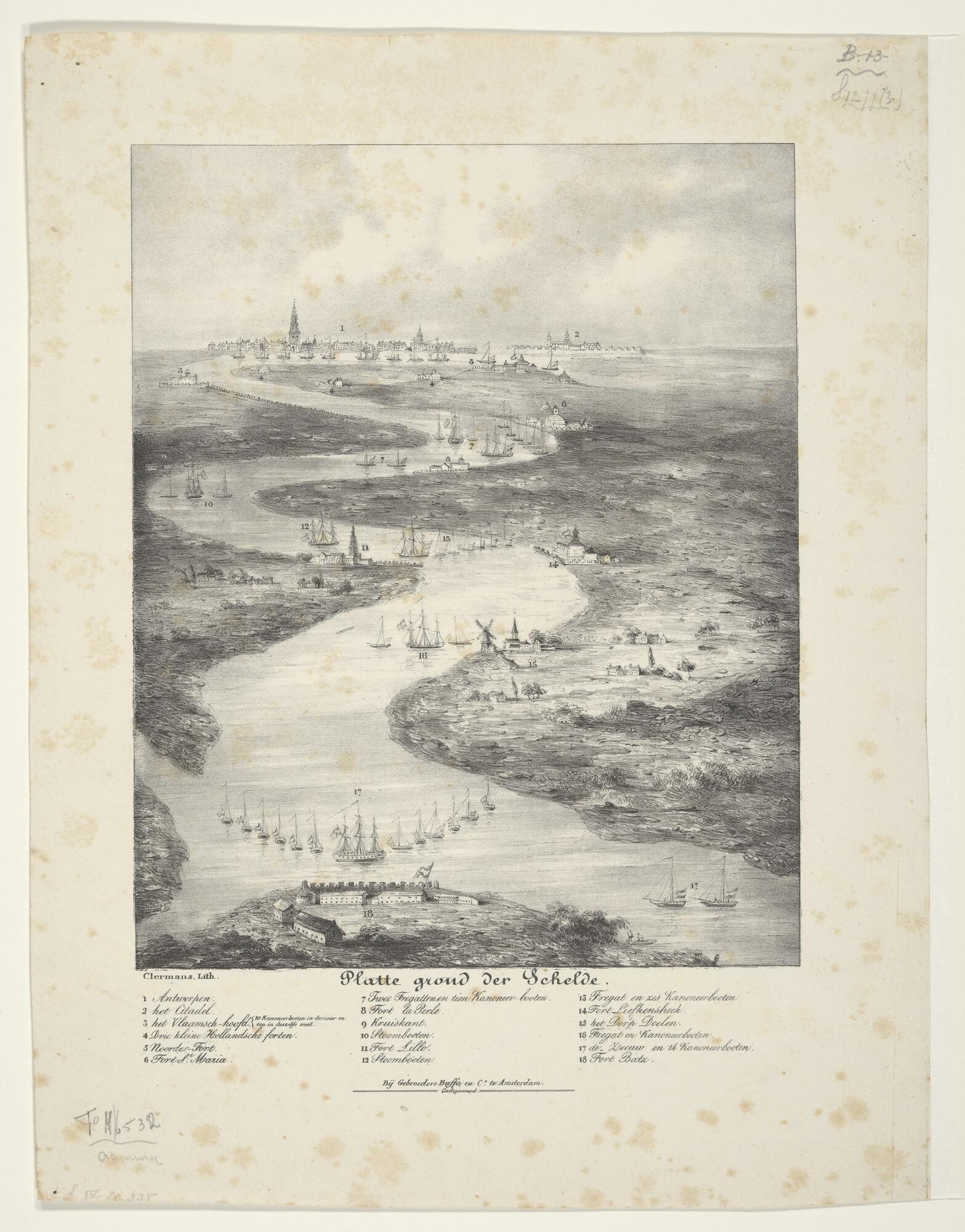 Plattegrond van de Schelde van de positie van de schepen, in 1830