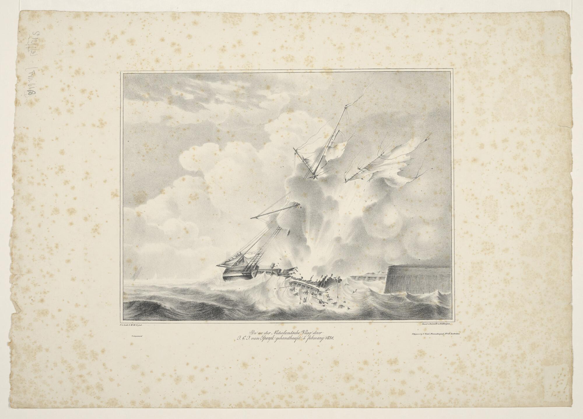 Het ontploffen van Kanonneerboot No. 2 van J.C.J. van Speijk, voor Antwerpen, 1831.