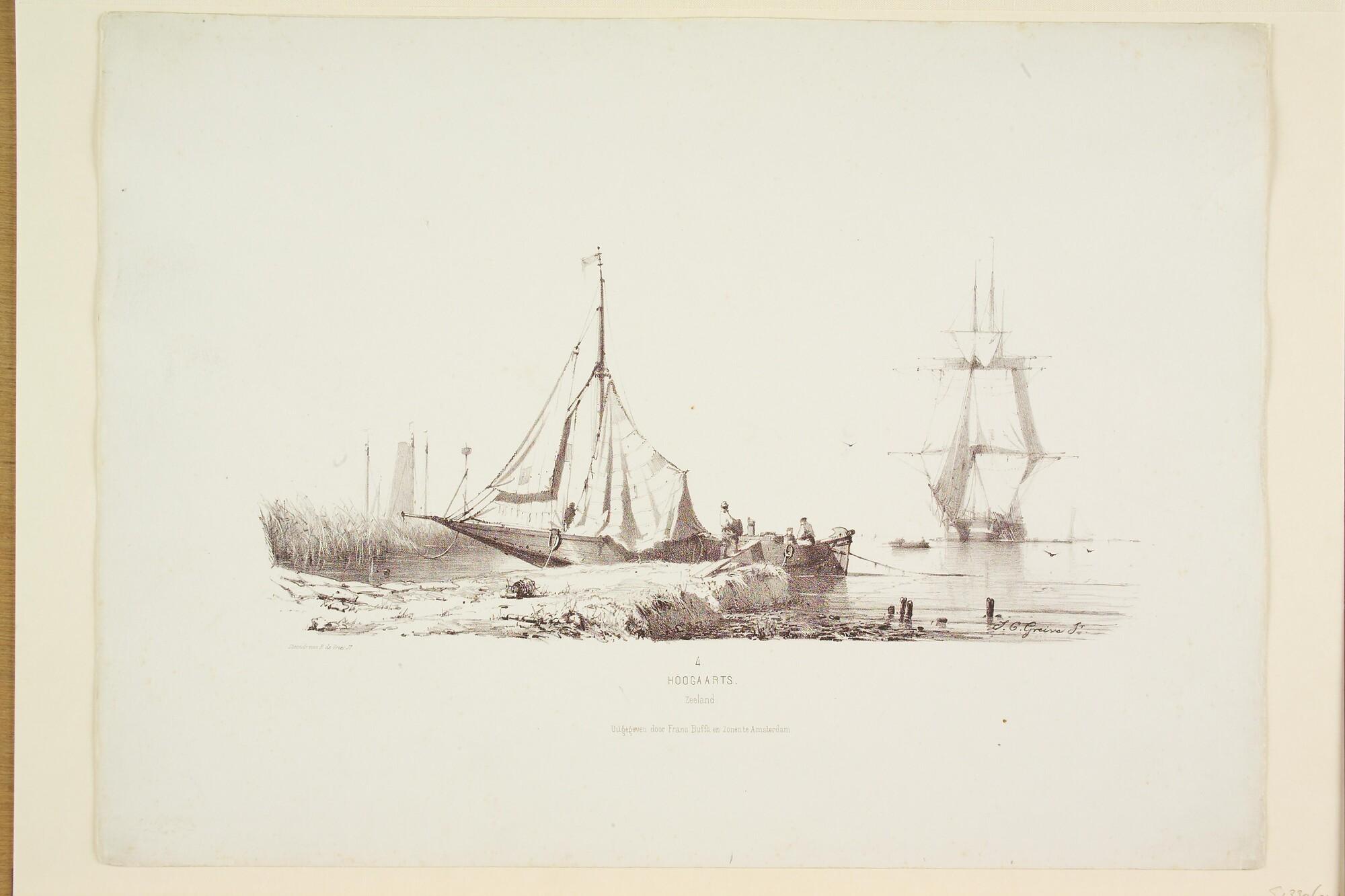 Prentserie "Studien van Hollandsche Schepen", nummer 4: een hoogaars voor anker.