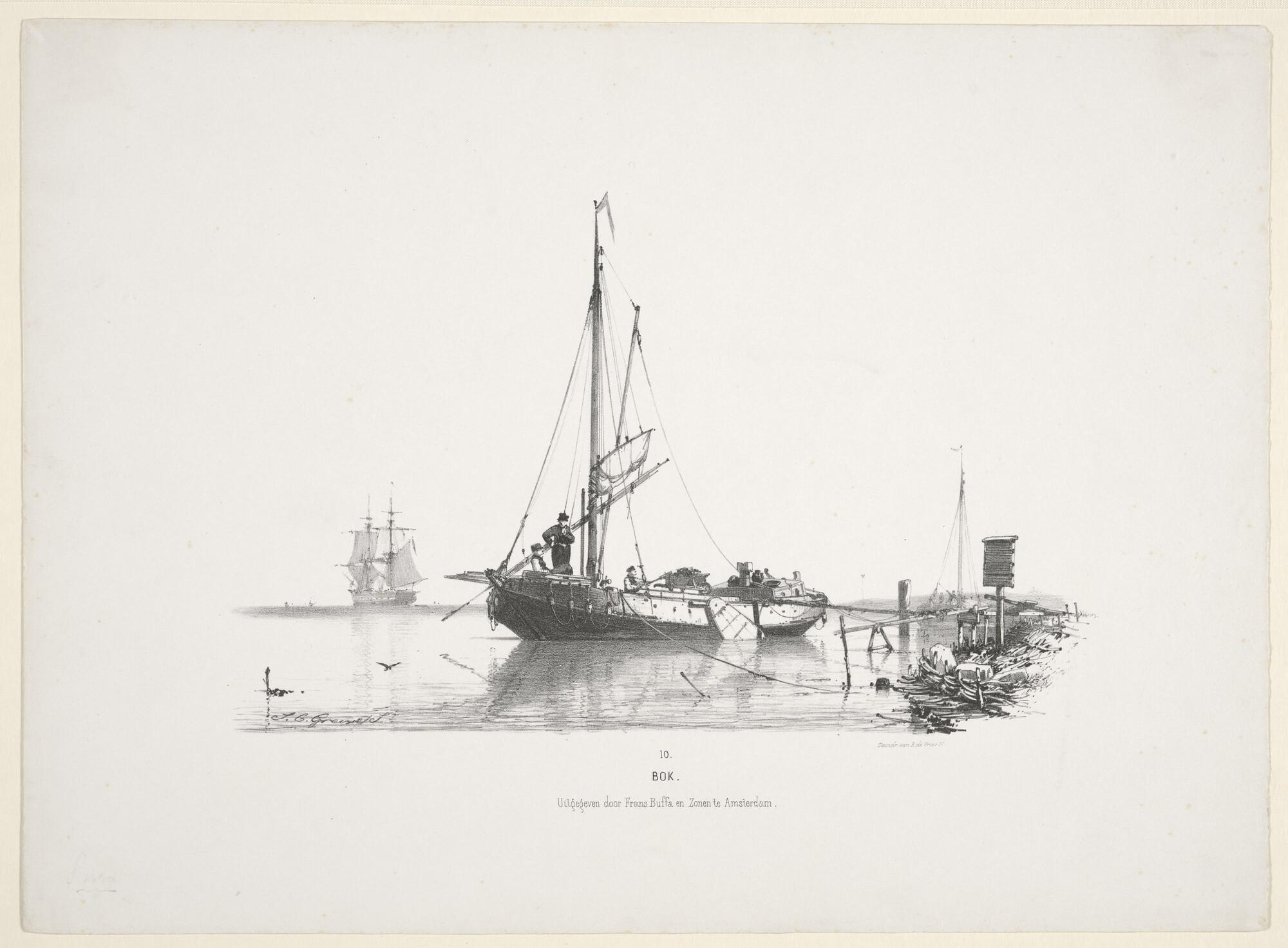 Prentserie 'Studien van Hollandsche Schepen', nummer 10: Een bok voor anker