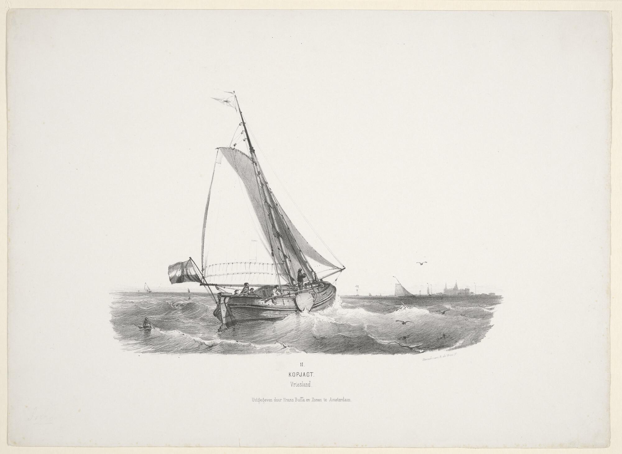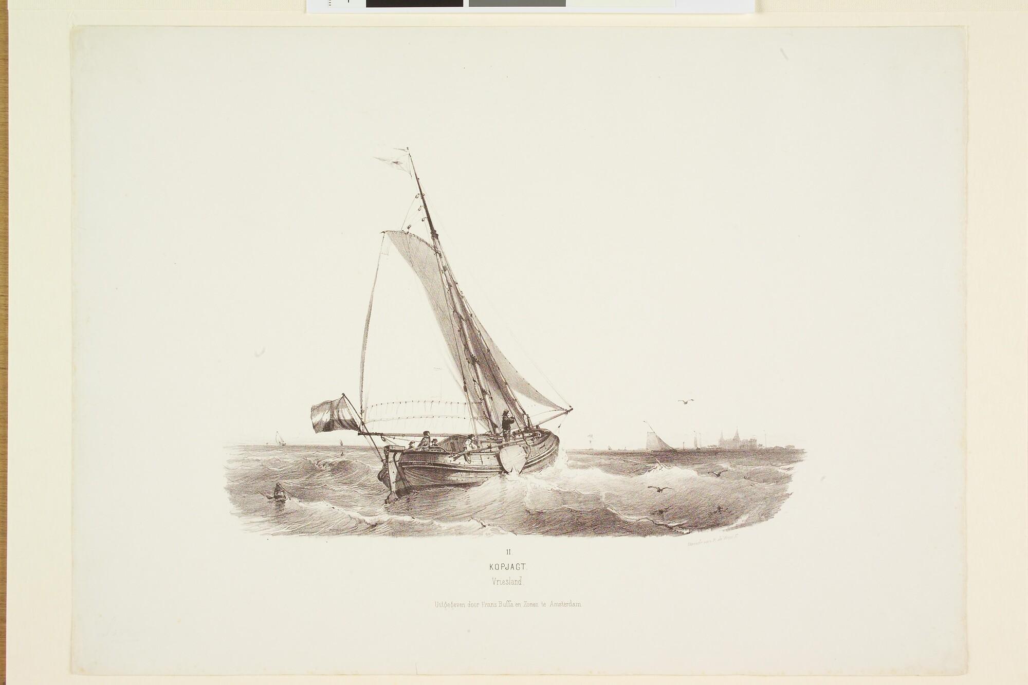 Prentserie "Studien van Hollandsche Schepen", nummer 11: een kopjacht op open water
