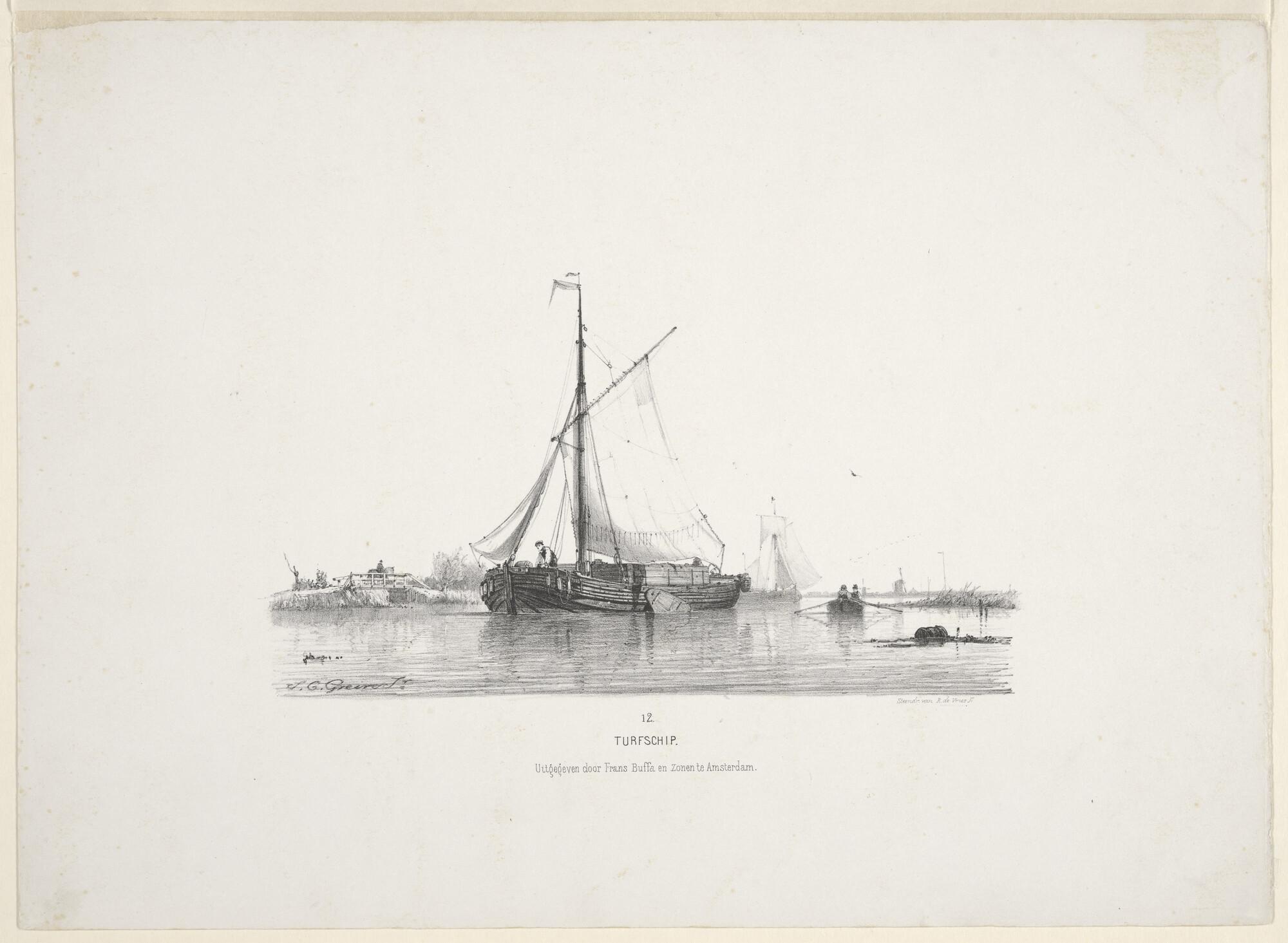 Prentserie 'Studien van Hollandsche Schepen', nummer 12: een turfschip