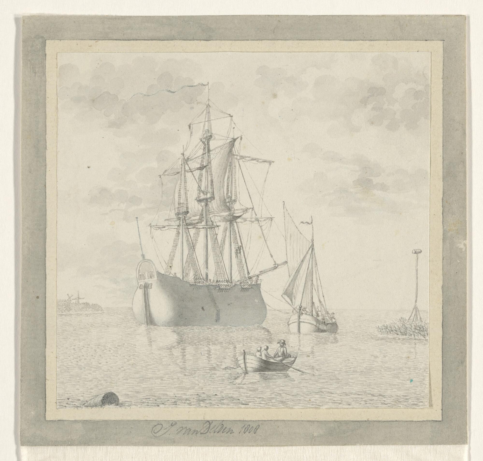 Een voor anker liggend fluitschip.