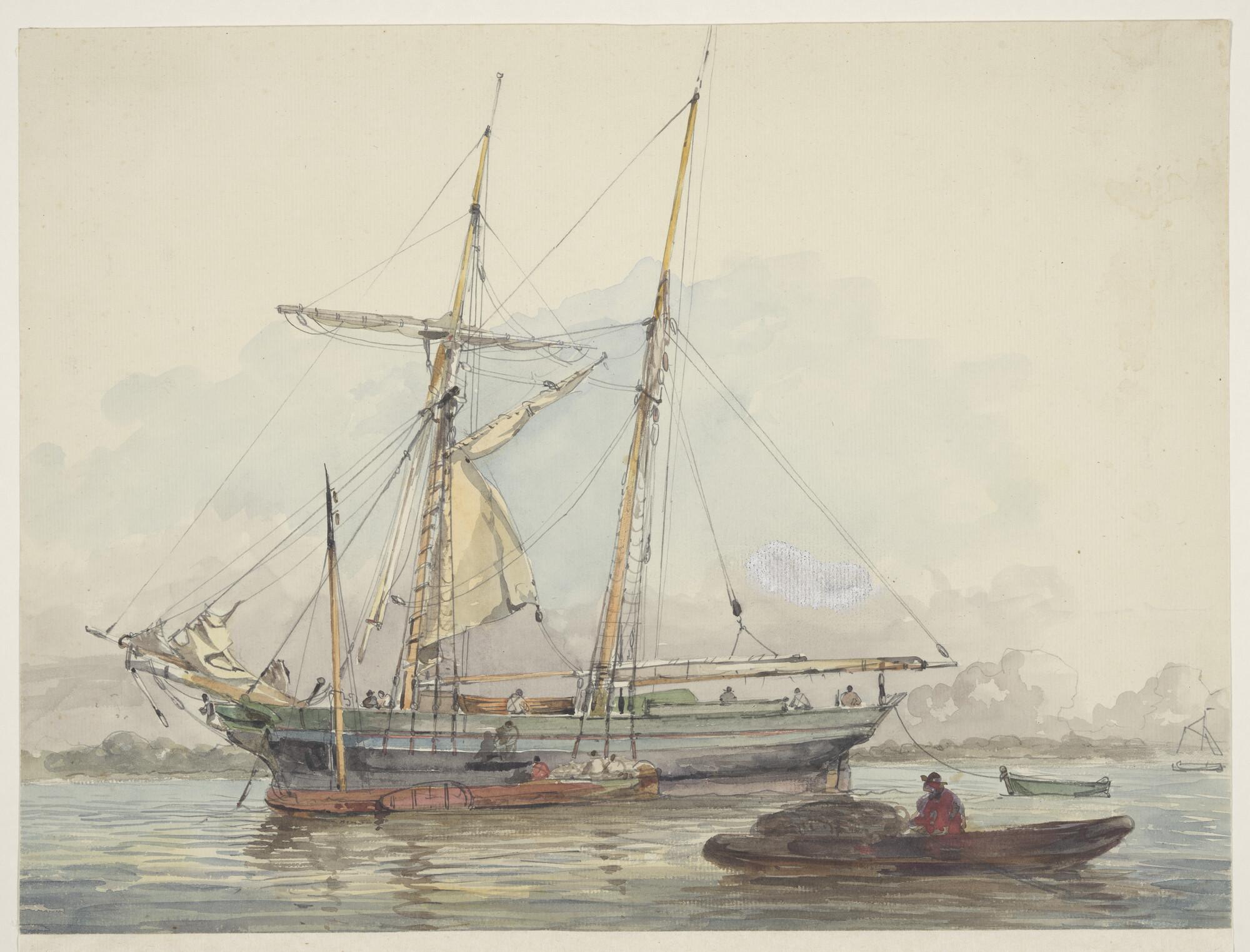 Een schoenerbrikschip op de Maas bij Dordrecht.