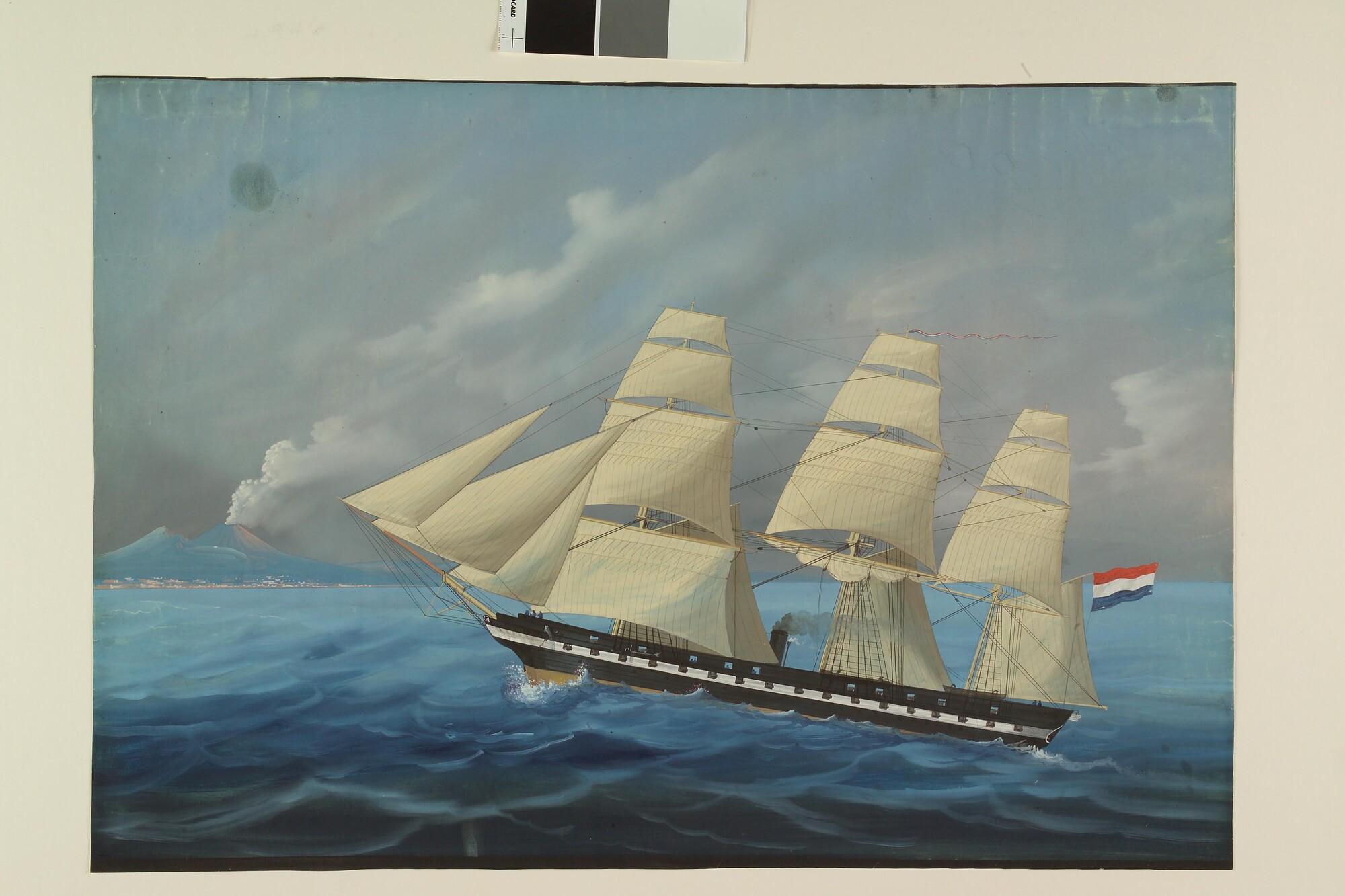 Een oorlogsfregat met stoomvermogen, van het type 'Evertsen' op de rede van Napels
