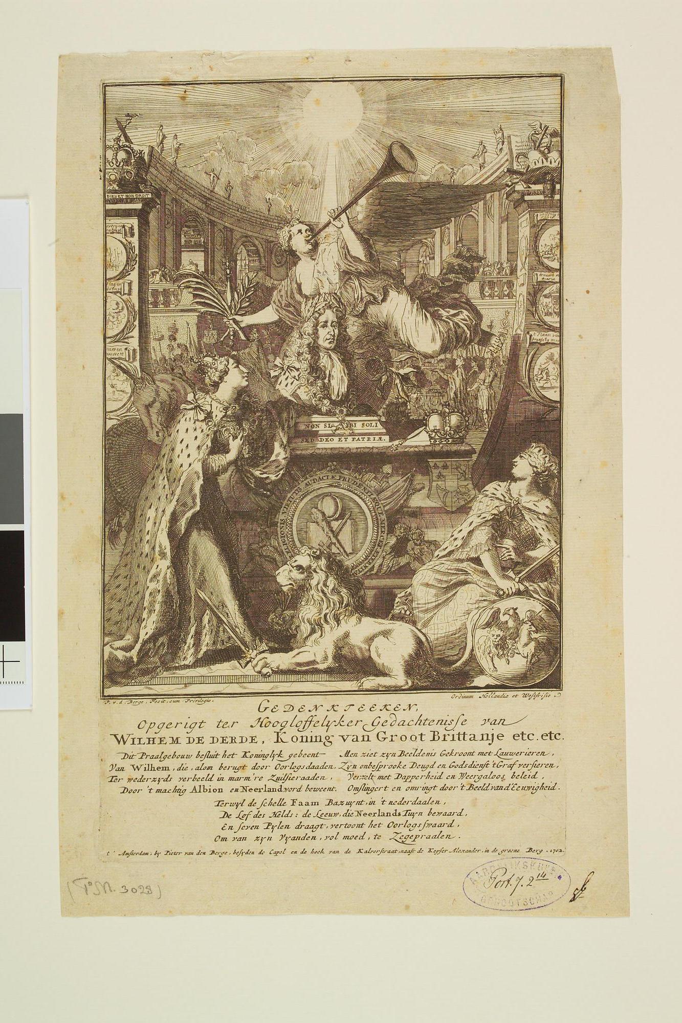 Gedenkteken ter nagedachtenis aan stadhouder-koning Willem III, met daaronder een twaalfregelig vers.
