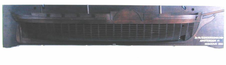 Open bewerkt halfmodel van een raderstoomschip eerste klasse, waarschijnlijk Zr.Ms. Amsterdam.