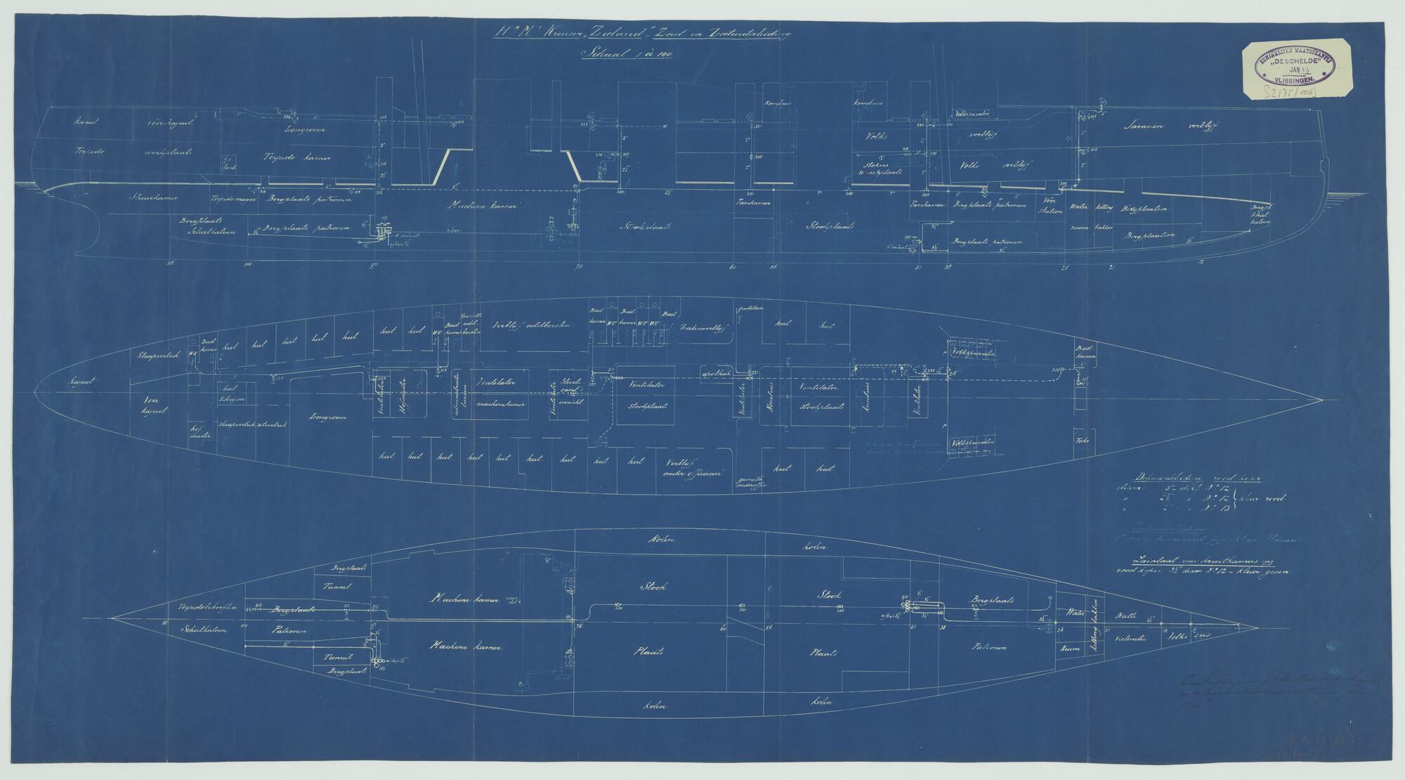 Zoet- en zoutwaterleiding van het pantserdekschip Hr.Ms. "Zeeland" (schaal 1:100).