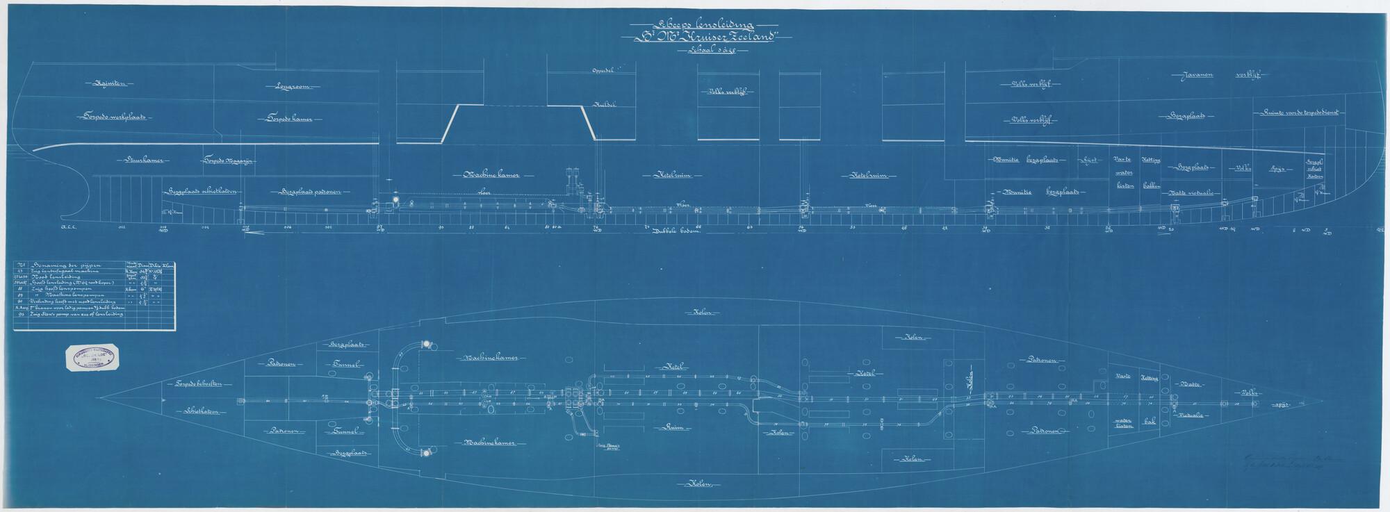 Scheepslensleiding in het ruim van het pantserdekschip Hr.Ms. 'Zeeland'