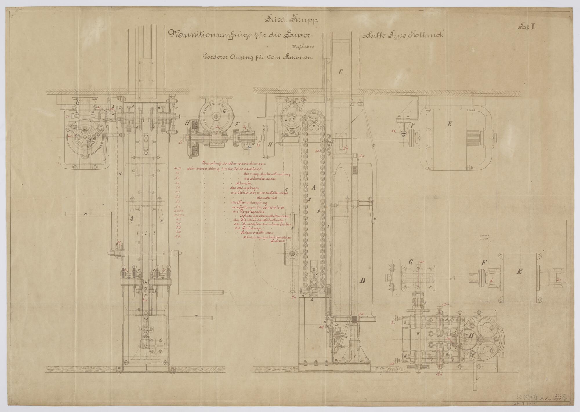 Munitielift voor 15 cm patronen van de scheepsklasse van het pantserdekschip Hr.Ms. "Holland" (schaal 1:5).