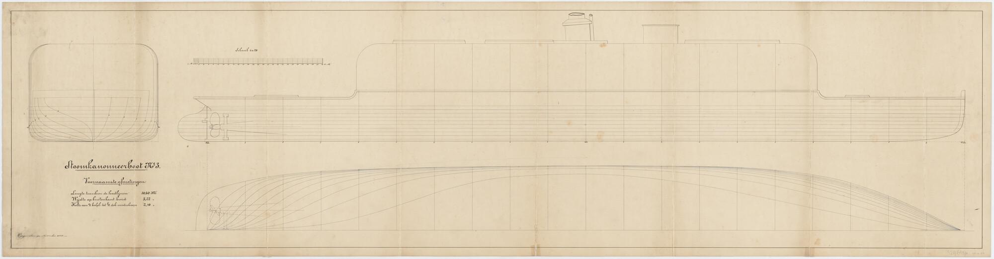 Lijnenplan en spantenraam van Zr.Ms. Stoomkanonneerboot No. 3