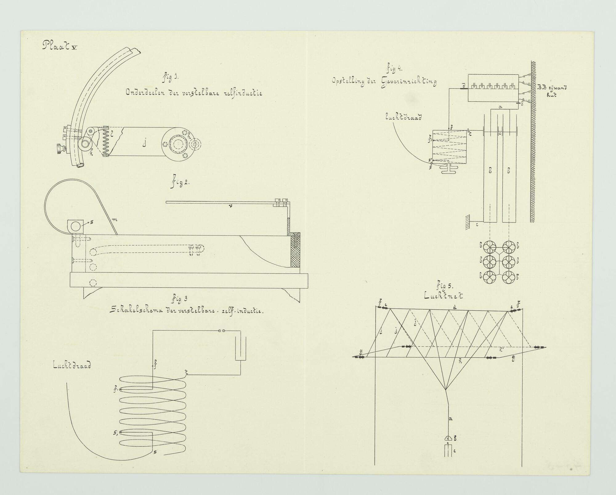 Elektrische schema's van het gehoorontvangtoestel en het schrijfontvangtoestel van het pantserdektorenschip Hr.Ms. "Koningin Wilhelmina der Nederlanden". Originele tekening.