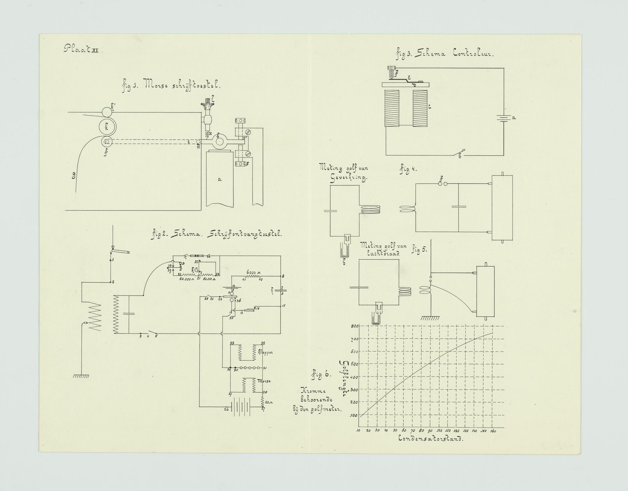 Elektrische schema's van het gehoorontvangtoestel en het schrijfontvangtoestel van het pantserdektorenschip Hr.Ms. 'Koningin Wilhelmina der Nederlanden'