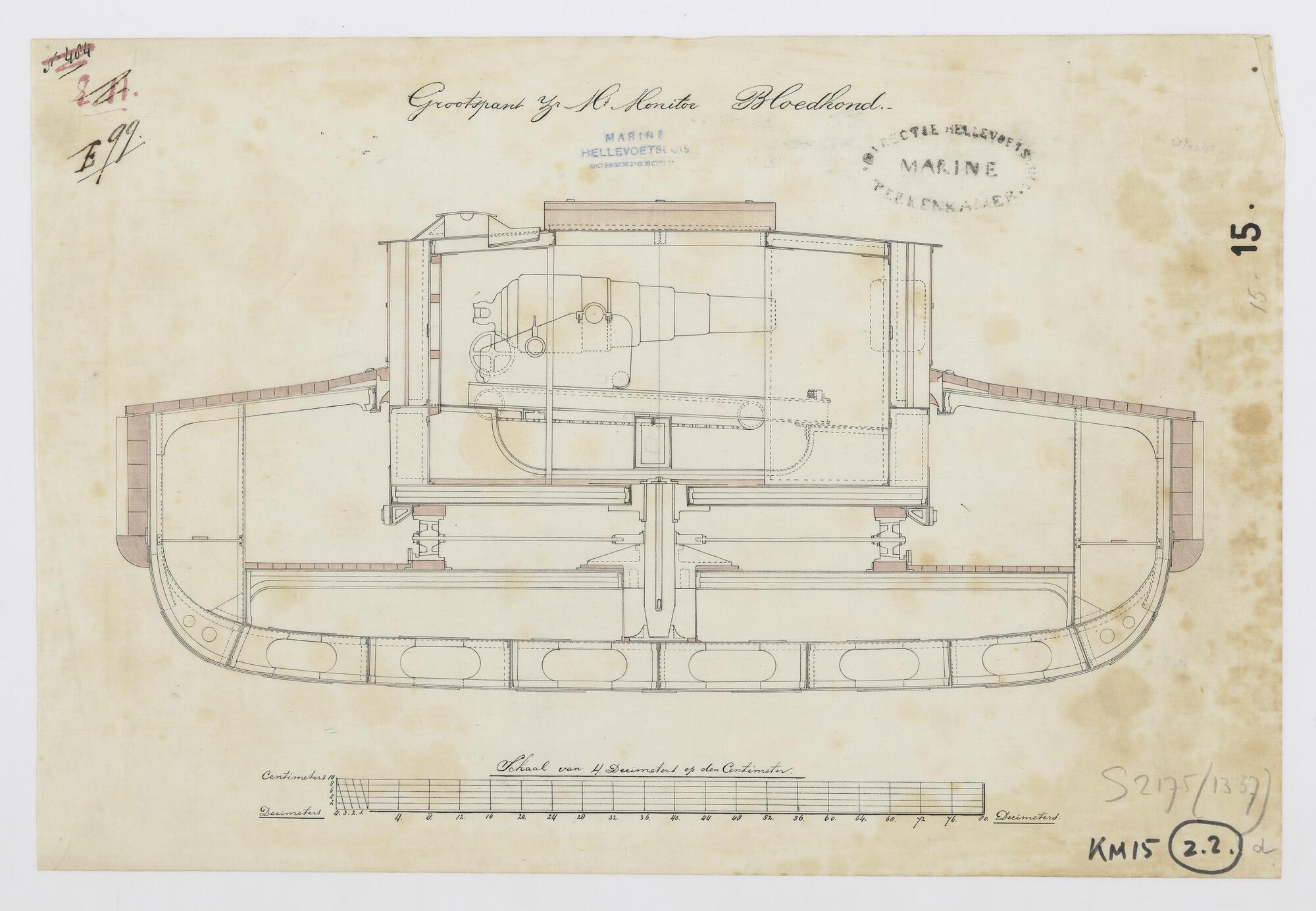 Dwarsdoorsnede van de monitor 2de klasse Zr.Ms. 'Bloedhond'