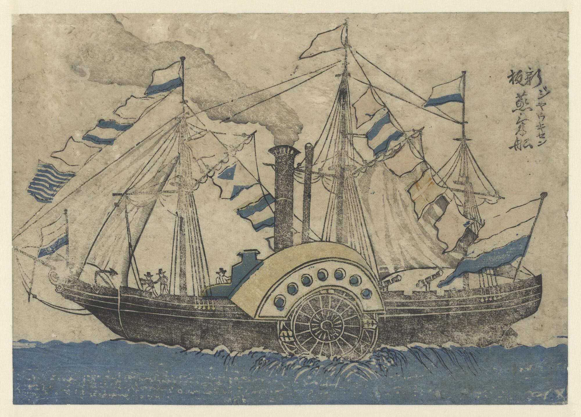 Nagasaki-prent: een bewapend raderstoomschip onder Nederlandse vlag