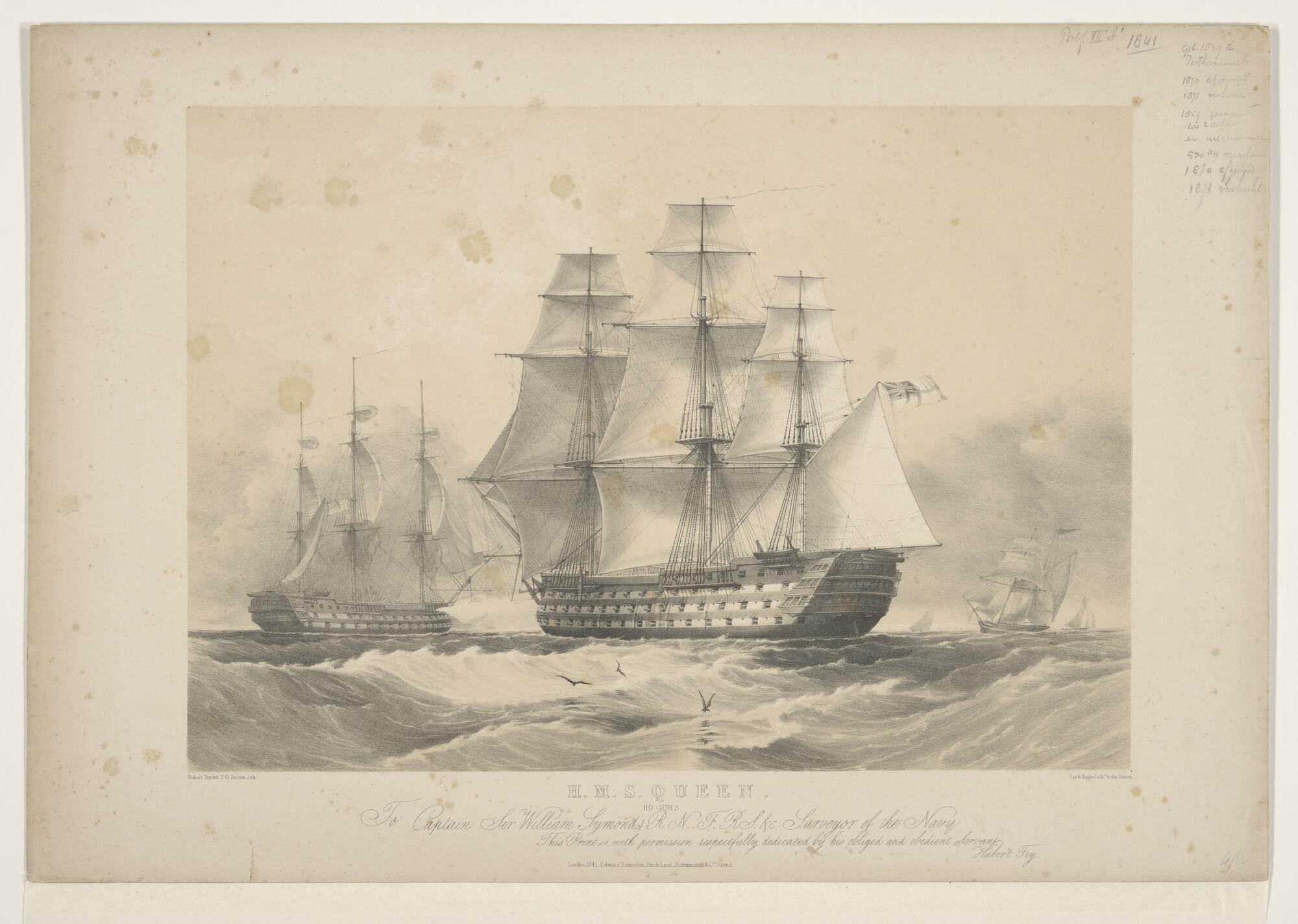 Het Britse linieschip HMS 'Queen' op volle zee
