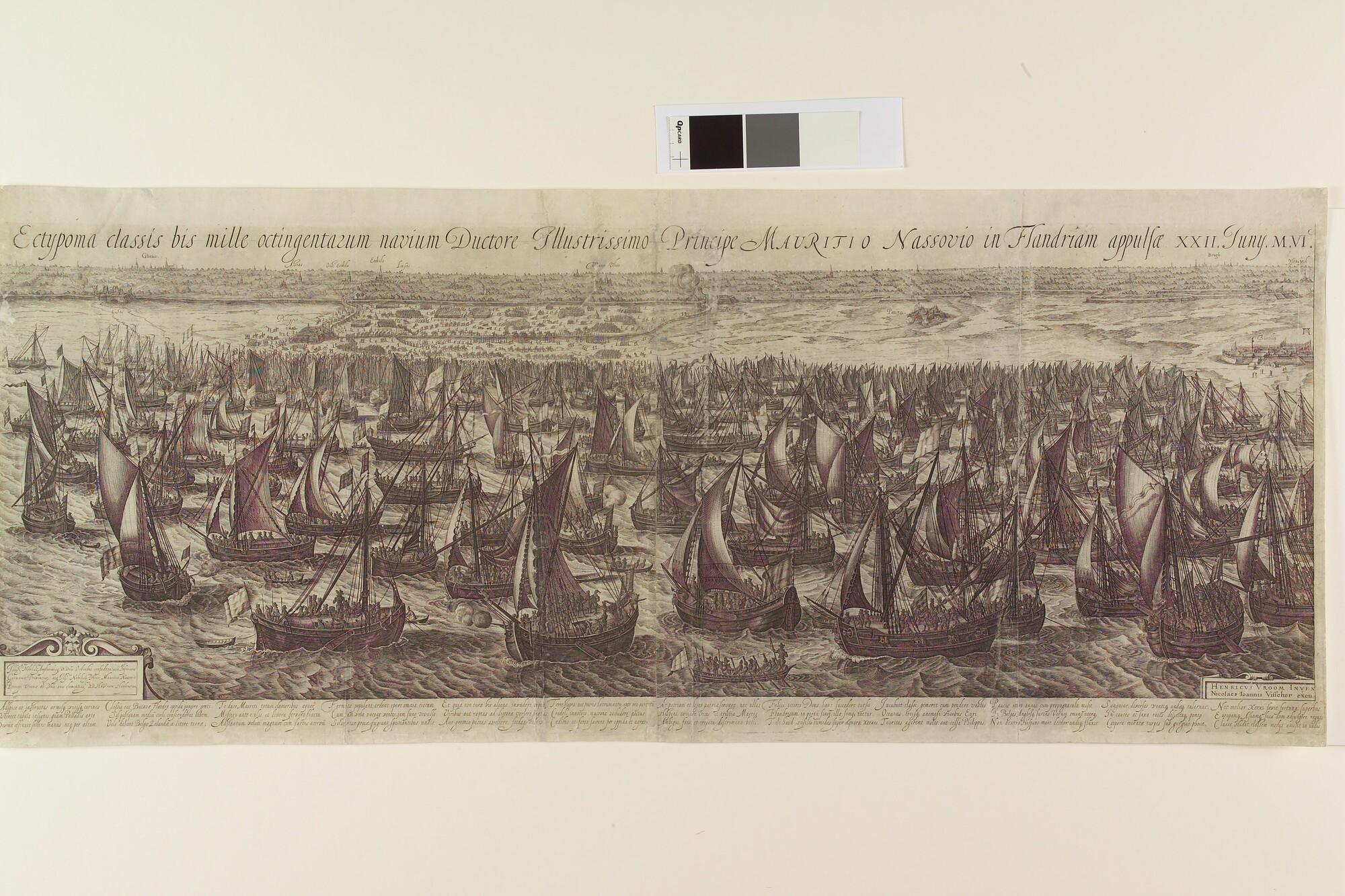 De Hollandse vloot van 2800 schepen voor Philippine, 1600. Met adres van Nicolaes J. Visscher.