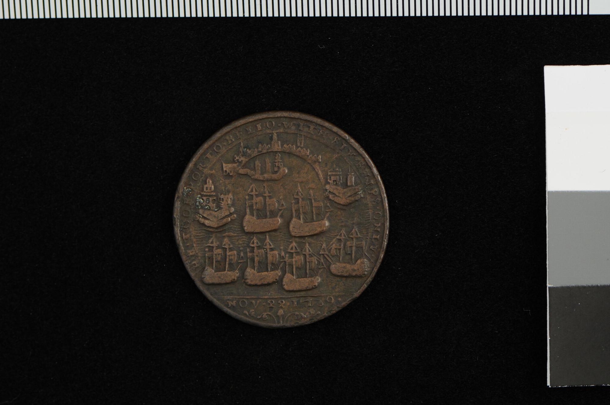 Engelse penning op admiraal Edward Vernon en de inname van Porto Bello, 1739.