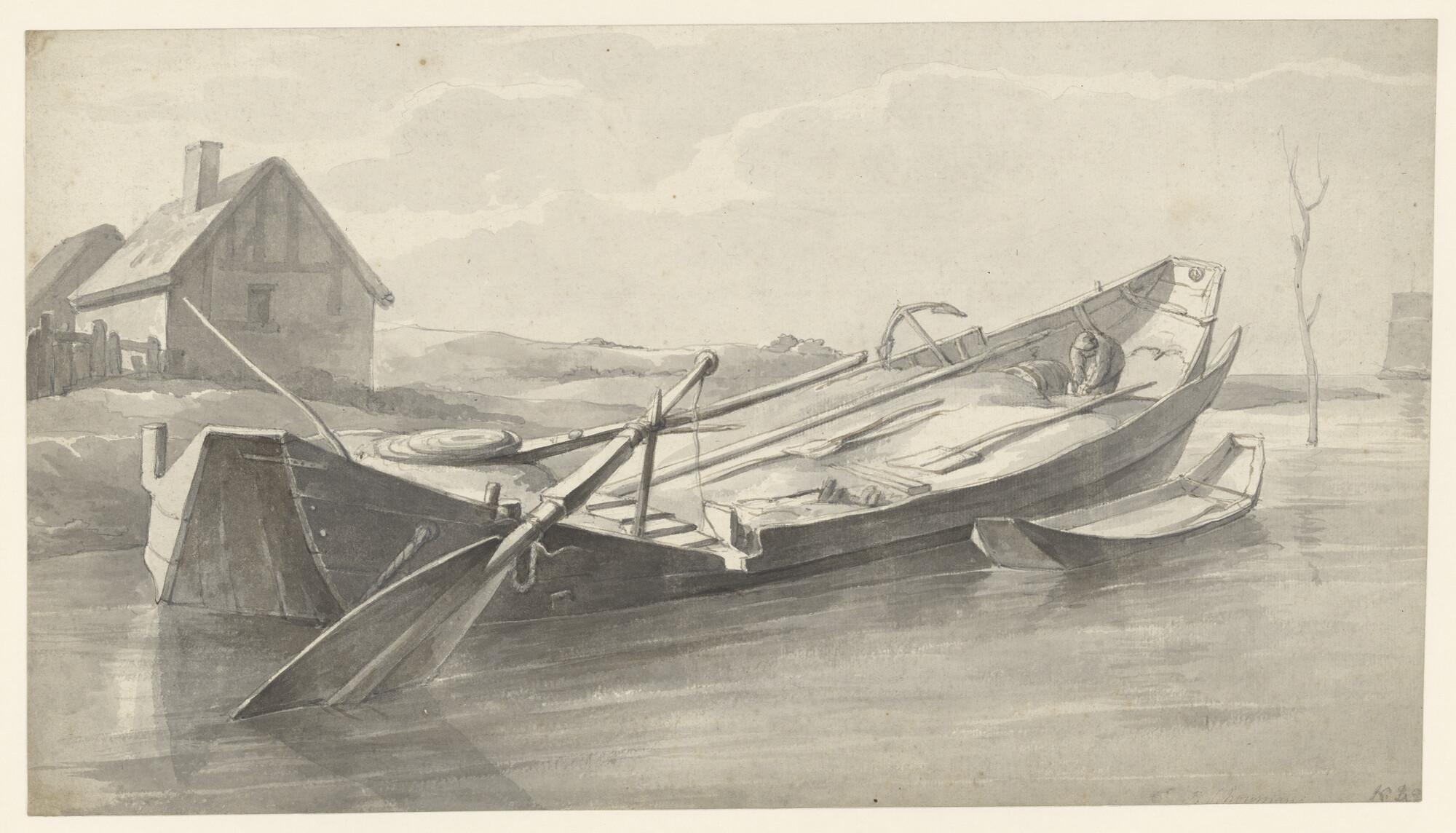 Een zandaak, afgemeerd bij een huis
