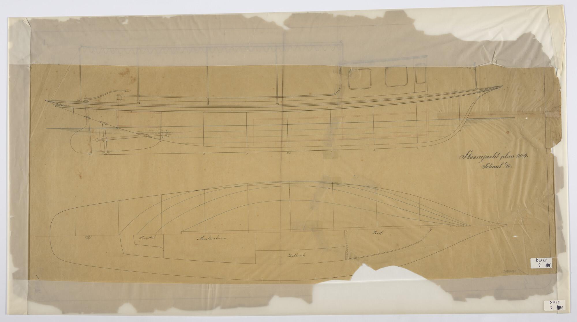 Algemeen plan van een stoomjacht met klippersteven.