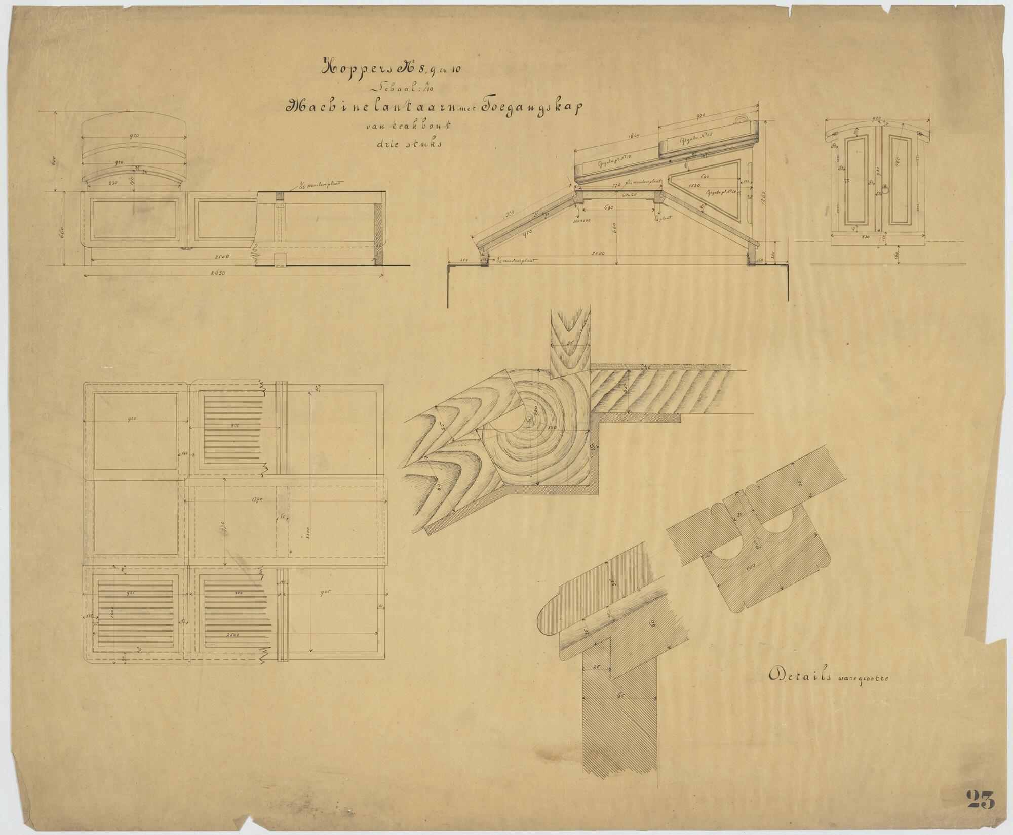 Kap machinekamer toegang van de hoppers "Pantikopea", "Tanais", "Tanagoria", "Olivia", "Dioskuria", "Martin Garcia I", "Martin Garcia II" en "Martin Garcia III" voor Werf Conrad.
