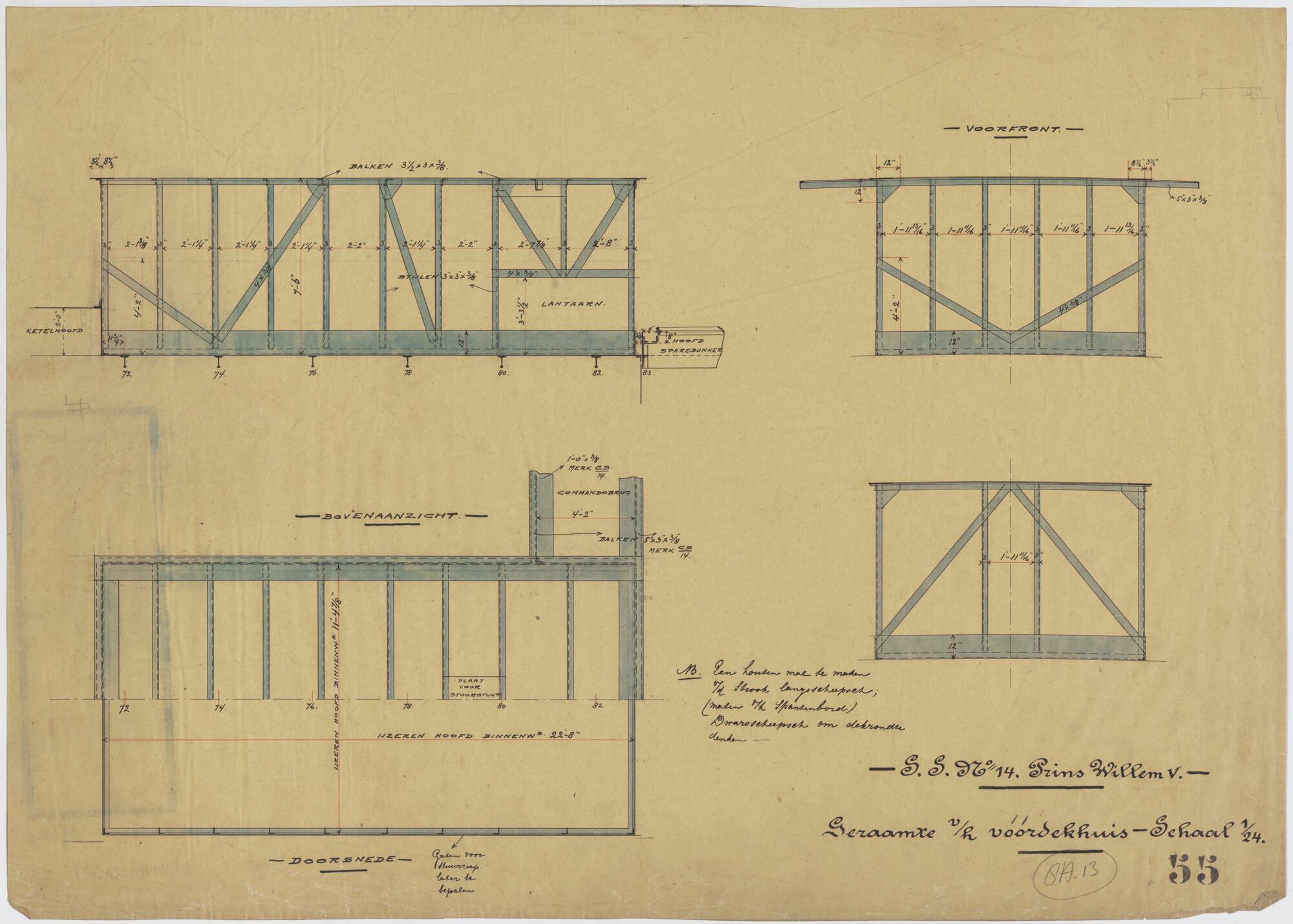Geraamte van het voordekhuis van het passagiersschip ss. Prins Willem V voor de KWIM.