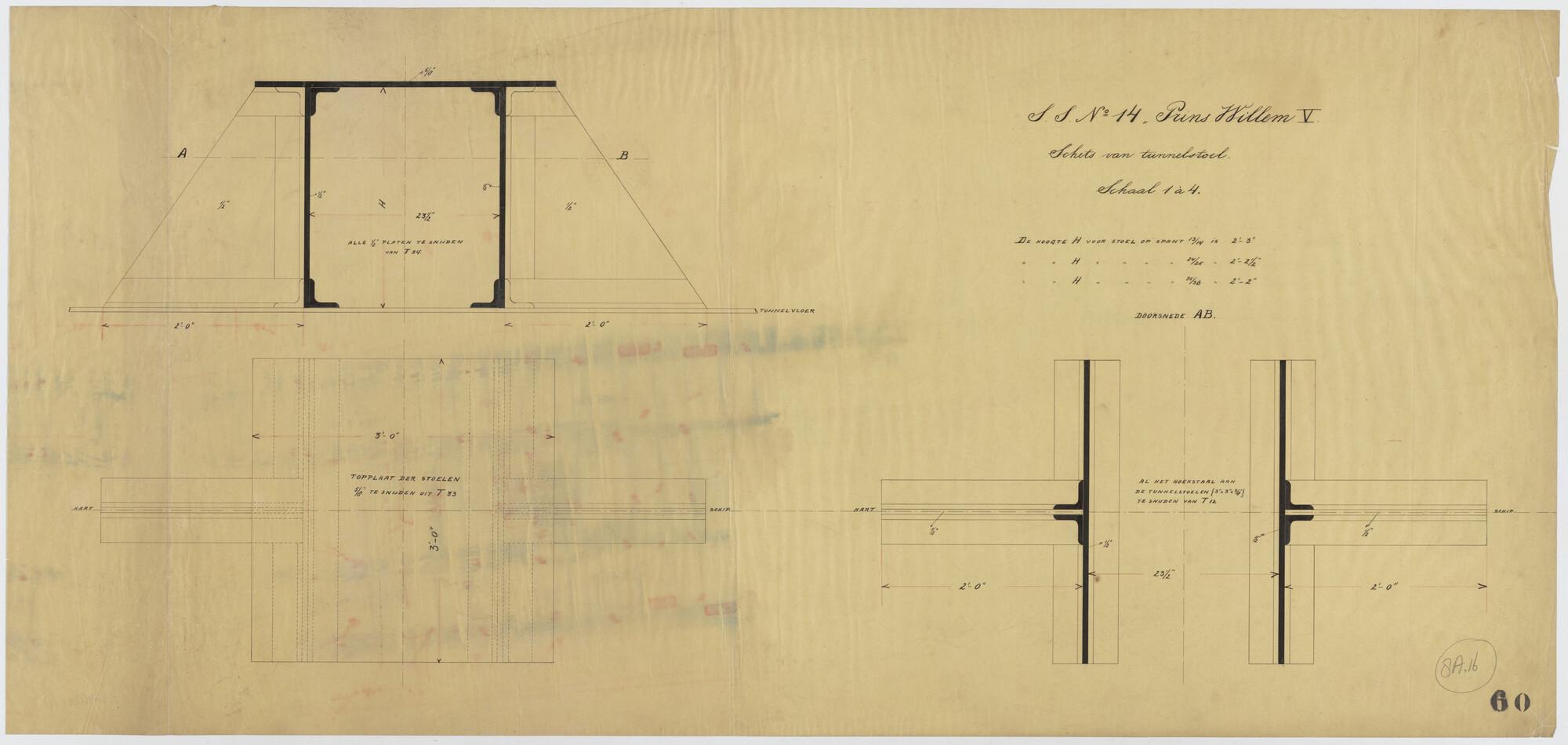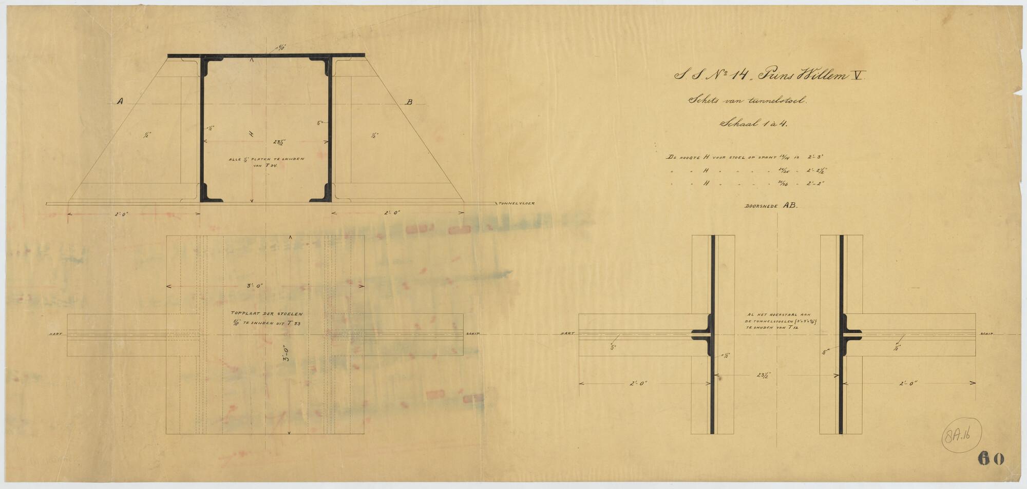 Schets van de tunnelstoel van het passagiersschip ss. Prins Willem V voor de KWIM