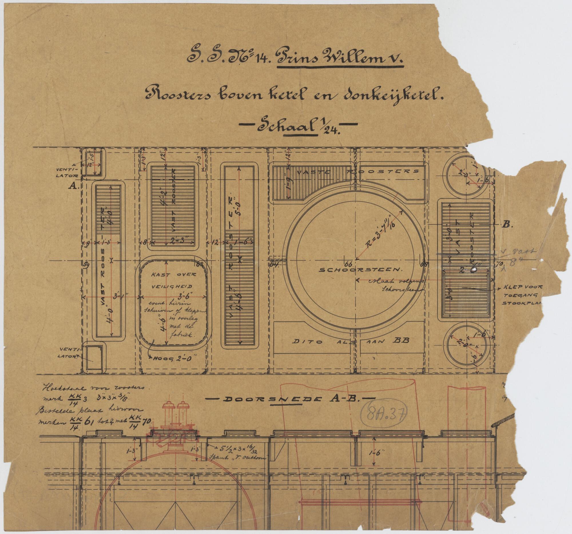 Roosters boven ketel en donkeyketel van het passagiersschip ss. Prins Willem V voor de KWIM.