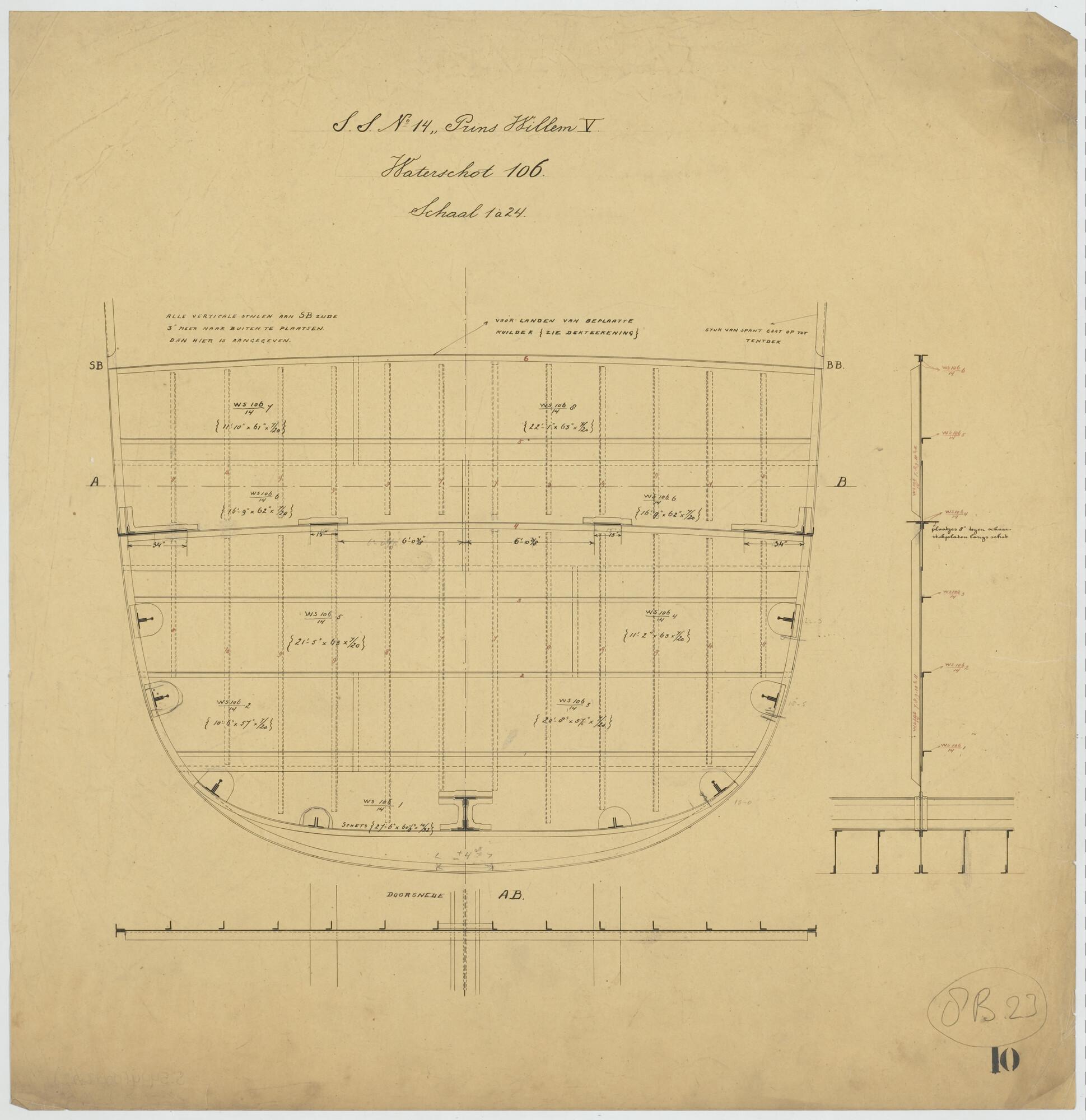 Waterschot 106 van het passagiersschip ss. Prins Willem V voor de KWIM.