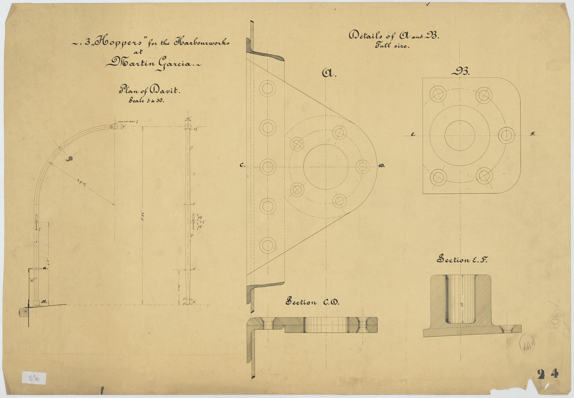 Davits van de hoppers "Pantikopea", "Tanais", "Tanagoria", "Olivia", "Dioskuria", "Martin Garcia I", "Martin Garcia II" en "Martin Garcia III" voor Werf Conrad.