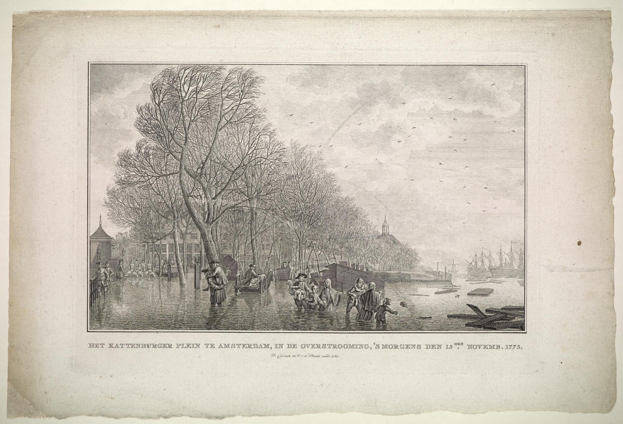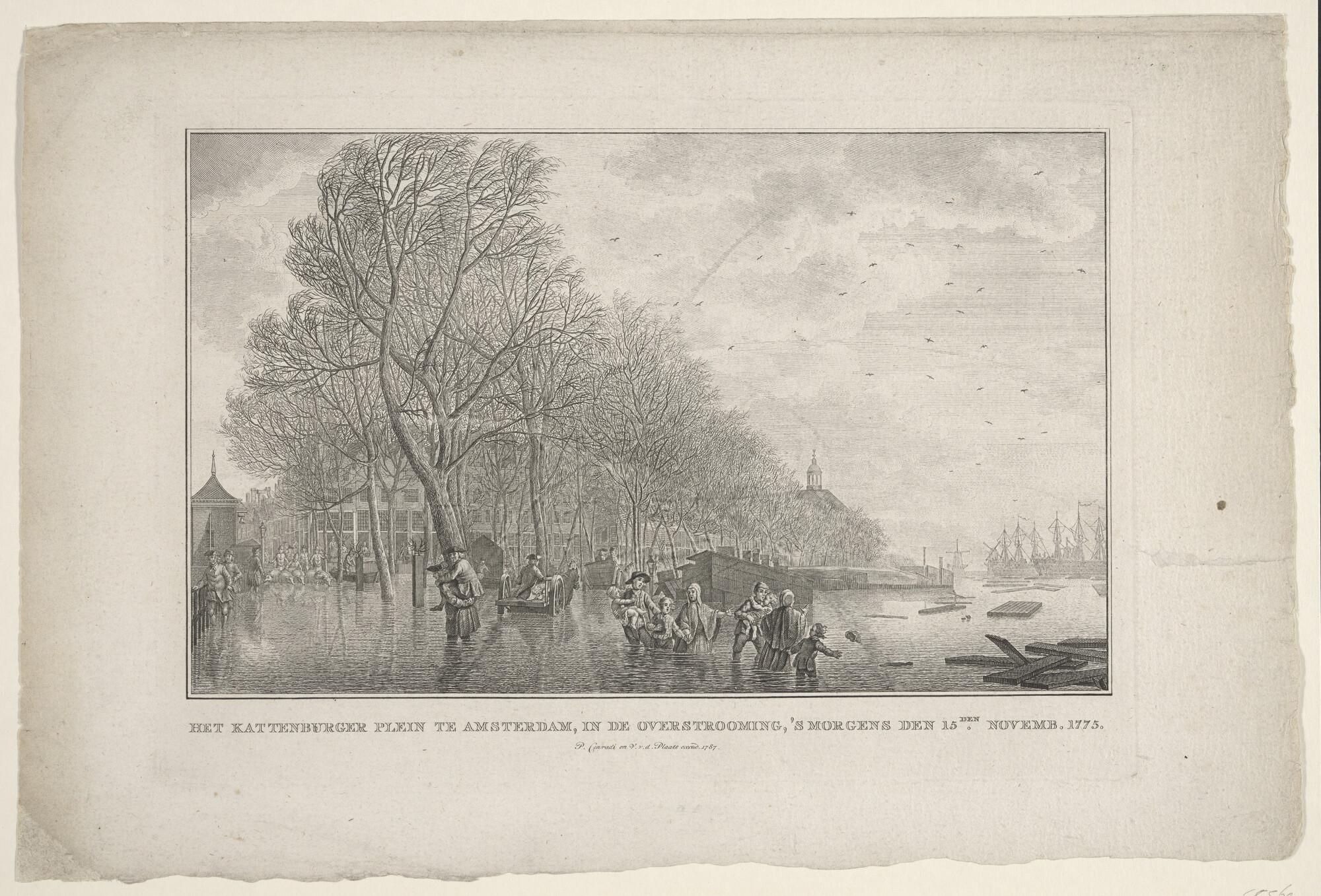 Overstroming van het Kattenburgerplein op 15 november 1775 te Amsterdam.