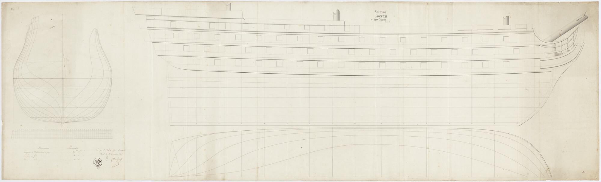 Lijnenplan van een Frans oorlogsschip met 120 stukken