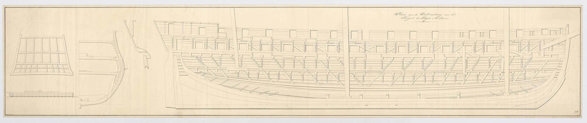 Constructieplan na de verlenging van het fregat 'Rijn' van 60 stukken