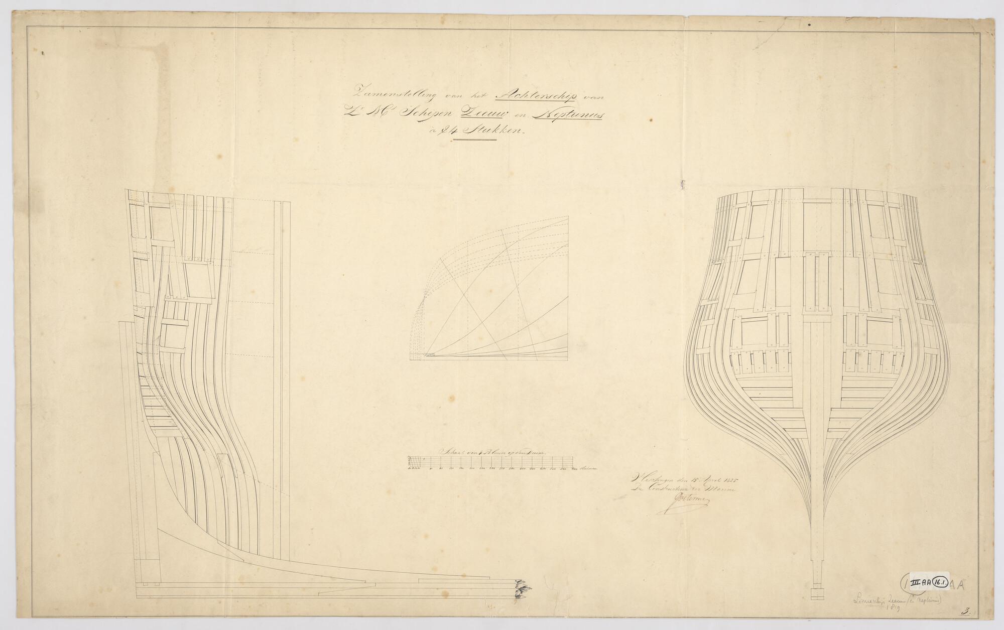 Constructieplan van het achterschip van de linieschepen 'Zeeuw' en 'Neptunus'